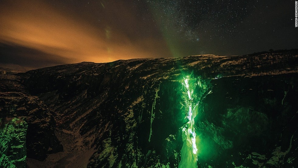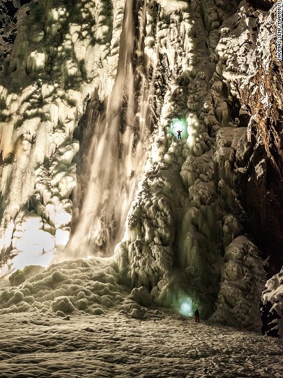 Bức ảnh do nhóm nghiên cứu người Thụy Sỹ chụp lại ở thác băng nằm cách thành phố Bergen của Na Uy 3 giờ lái xe. Nhiếp ảnh gia Thomas Senf đã tận dụng những kỹ xảo đặc biệt để chụp được bức ảnh tuyệt vời. |