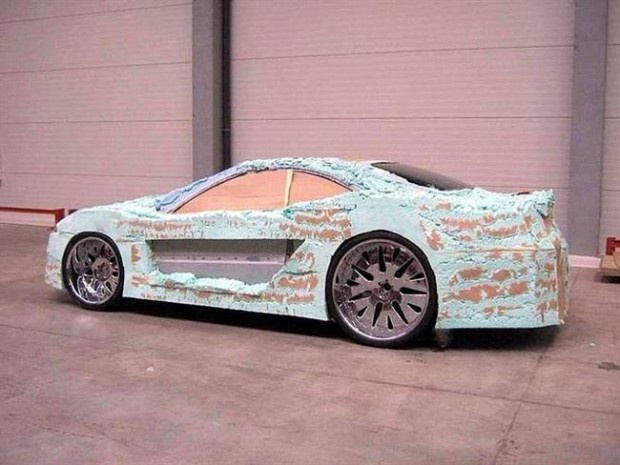 | Công đoạn đầu tiên khi tân trang chiếc xe này là sử dụng mút xốp. Trông có vẻ rối rắm nhưng rồi dần dẫn chiếc xe sẽ thành hình. |