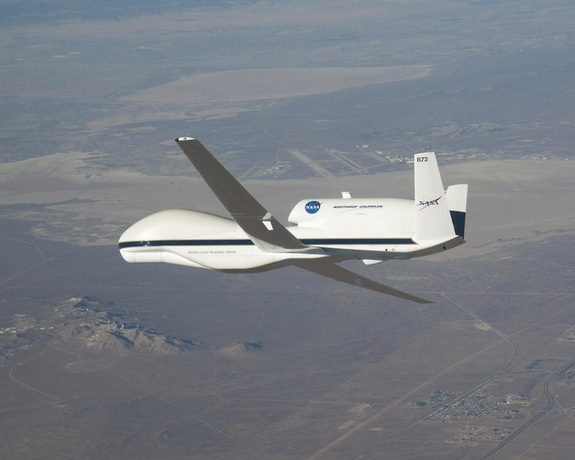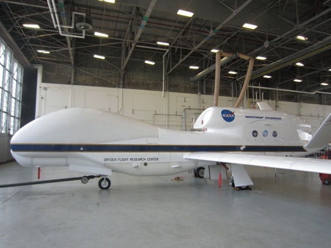 Máy bay do thám không người lái RQ-4 Global Hawk là sản phẩm của tập đoàn chế tạo vũ khí Northrop Grumman, ra đời với nhiệm vụ luồn sâu vào lòng địch để thu thập thông tin tình báo. Tuy nhiên, NASA mua nó cho nhiệm vụ săn bão. |