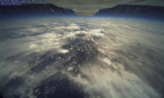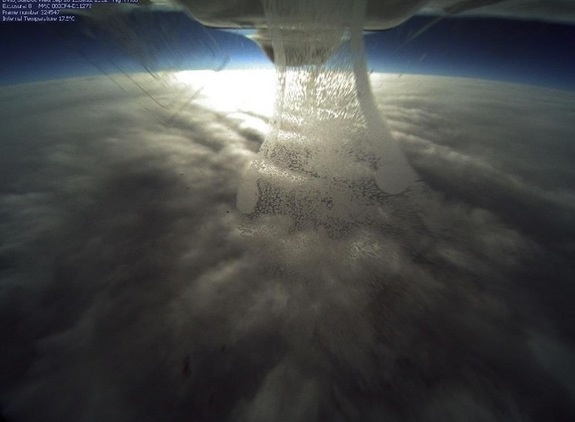 Camera trên bụng của Global Hawk chụp hình một đám mây đang hình thành trên vùng biển phía bắc Thái Bình Dương ngày 7/4/2012. Hình ảnh và dữ liệu do Global Hawk thu thập sẽ giúp các nhà khoa học có cái nhìn toàn cảnh nhất về khí hậu trái đất cũng như cường độ và hướng di chuyển của những cơn bão. |