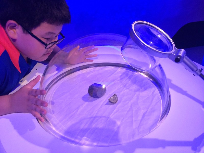 | Để đúng với không khí của phim, nhà tổ chức còn trưng bày một mảnh thiên thạch đã rơi xuống Hàn Quốc hồi tháng 3. |