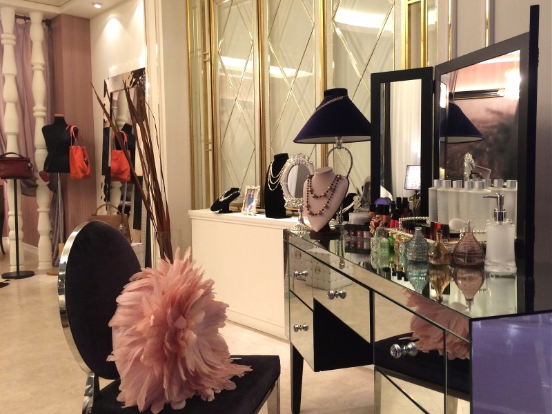 Bàn trang điểm với đầy đủ dụng cụ cho cô nàng diễn viên xinh đẹp.