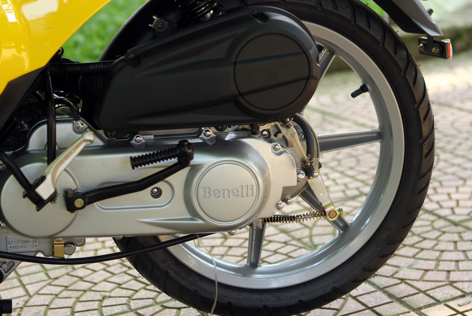 | Benelli Pepe được trang bị phanh tang trống phía sau. Bánh xe có kích thước 90/80-16. |
