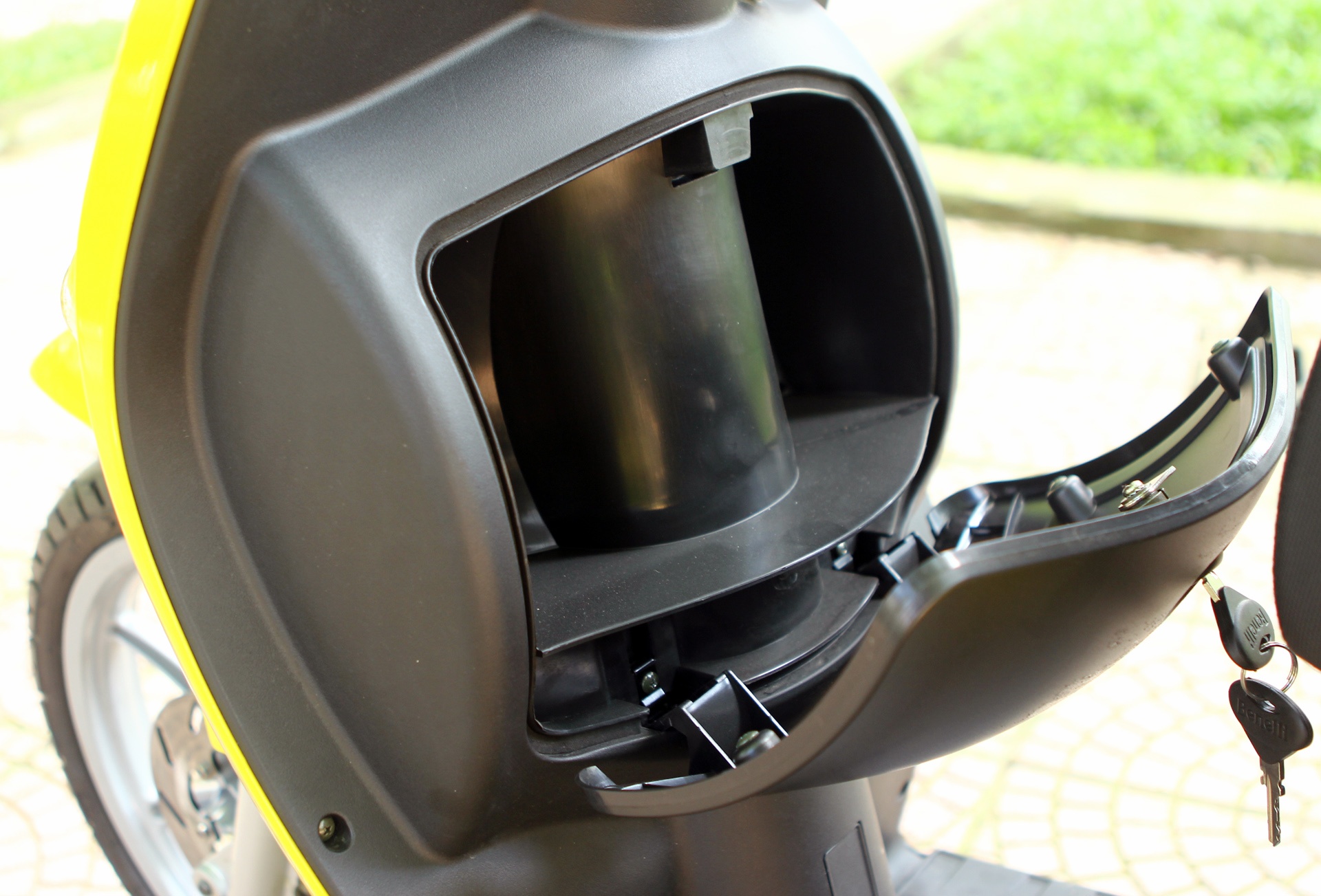 | Benelli Pepe có bình xăng đặt dưới yên xe, dung tích 6 lít. Tại thị trường Việt Nam, Pepe có các màu sắc trắng, vàng, cam, xám. |
