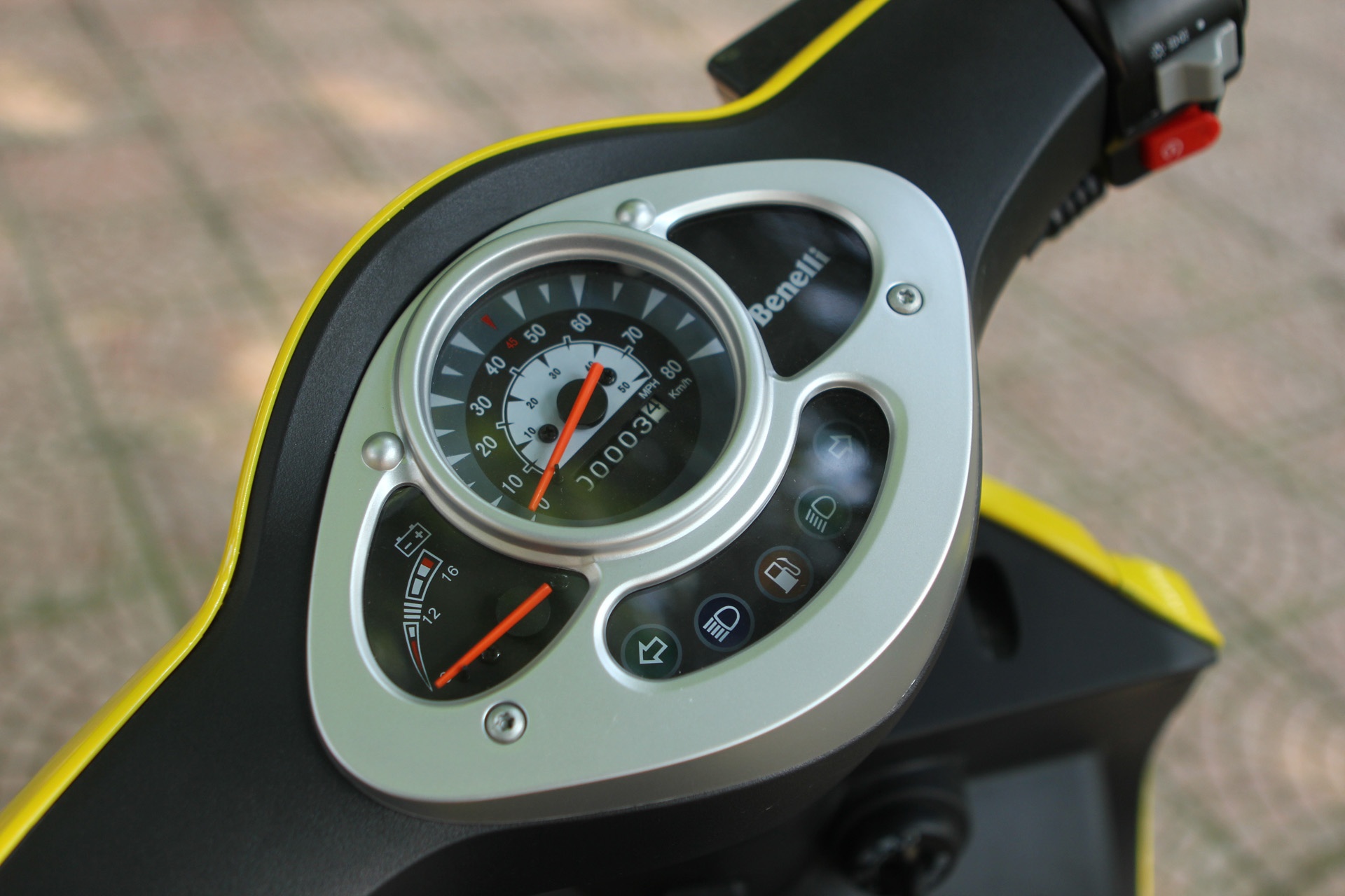 | Cụm đồng hồ trên Benelli Pepe được thiết kế gói gọn trong một hình O-val, nhỏ nhắn, bắt mắt. |
