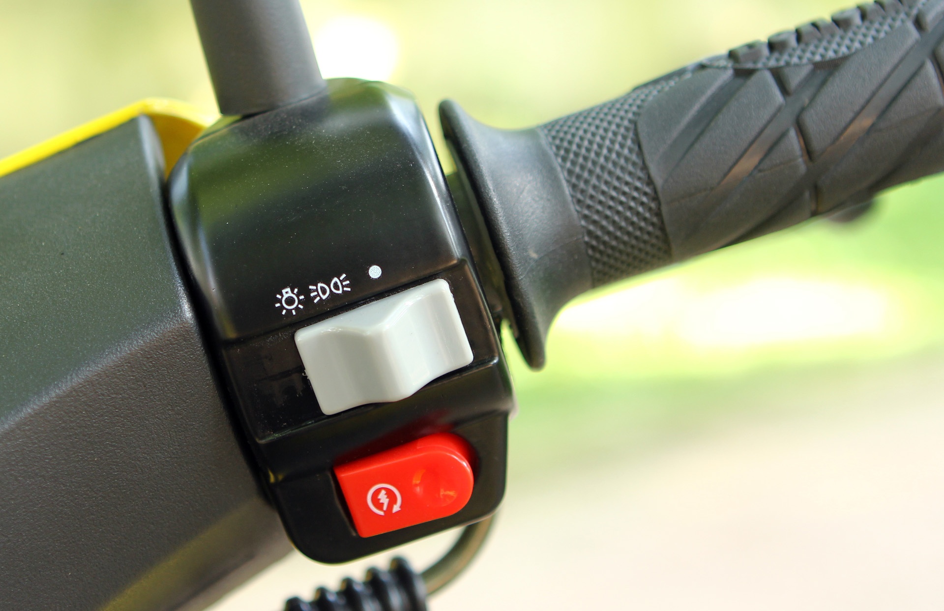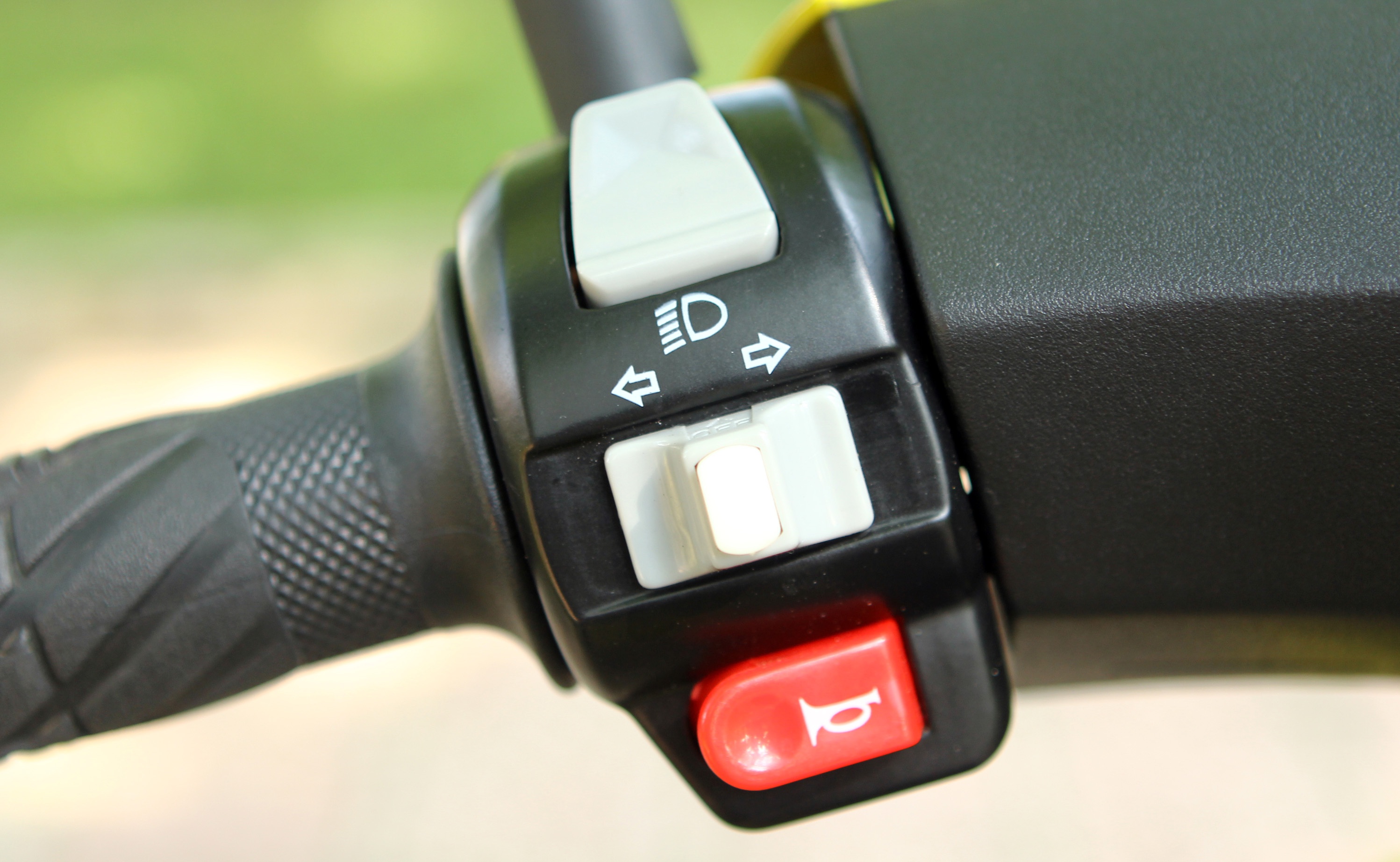 | Các nút điều khiển trên hai tay lái của Pepe không có sự khác biệt so với những mẫu xe máy dung tích lớn hơn, bao gồm công tắc còi, đèn, điều chỉnh pha/cốt, xi-nhan và khởi động. |