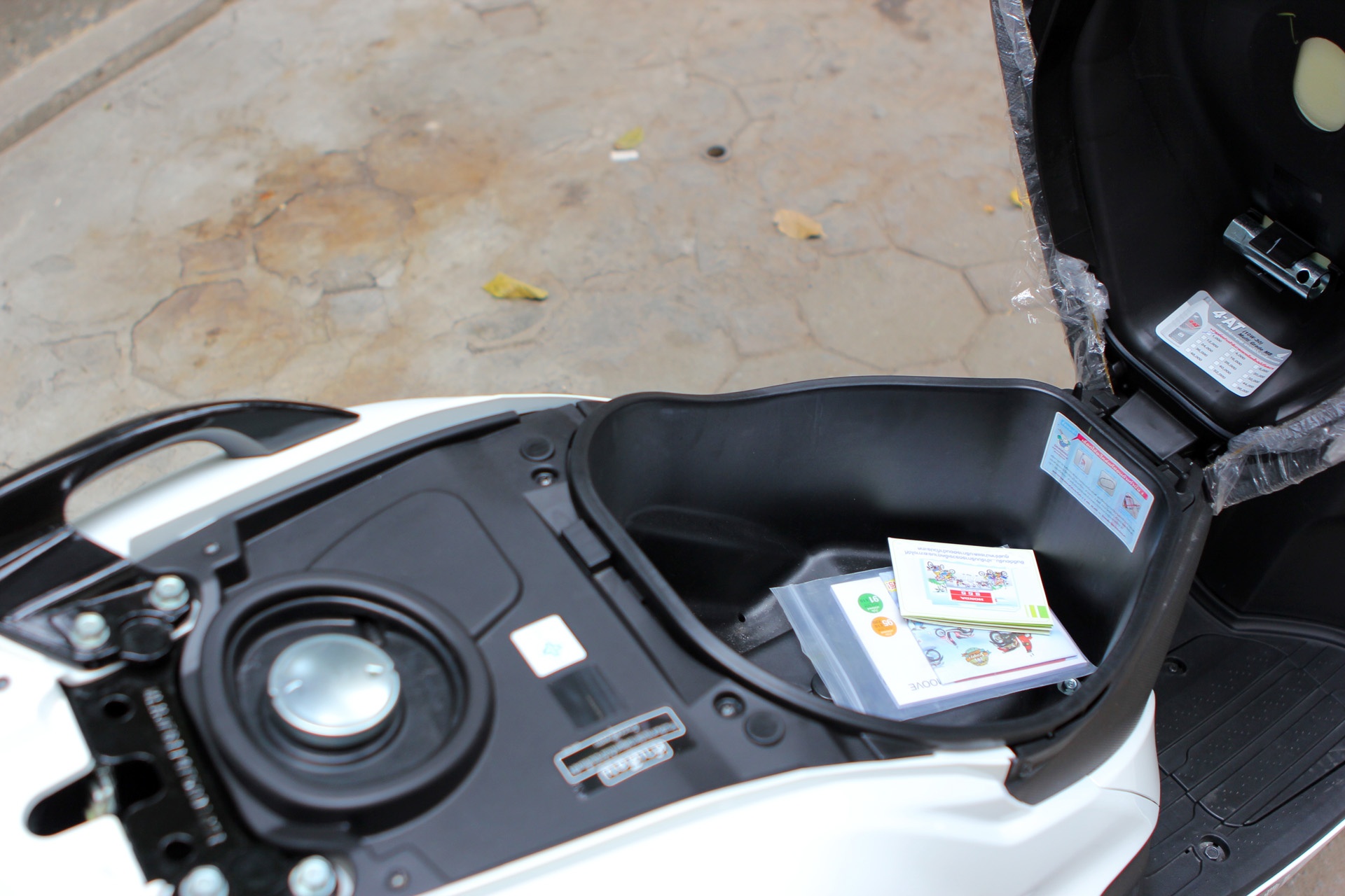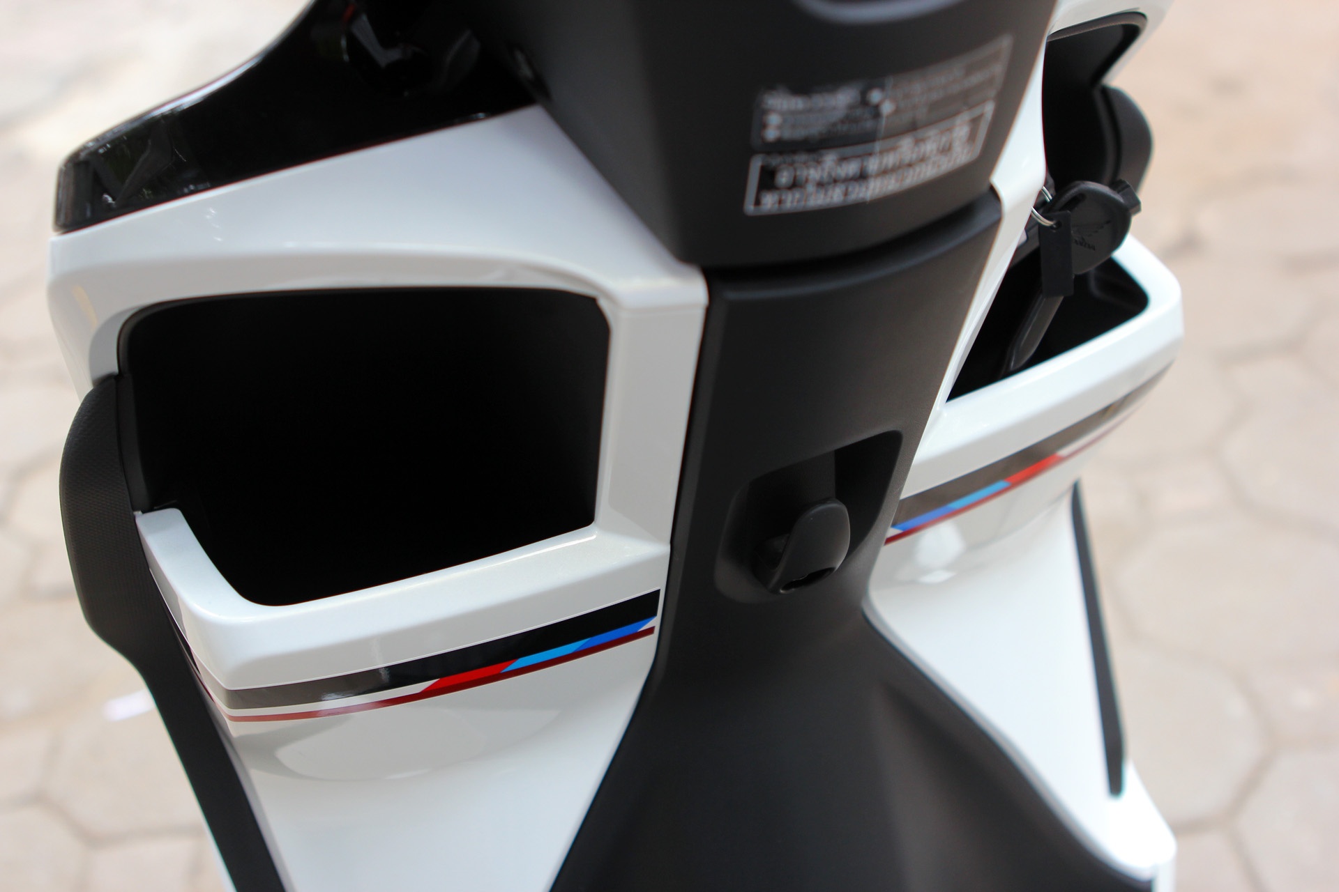 | Cốp dưới yên xe có khả năng chứa vừa một mũ bảo hiểm nửa đầu. Bình xăng đặt dưới yên xe. |
