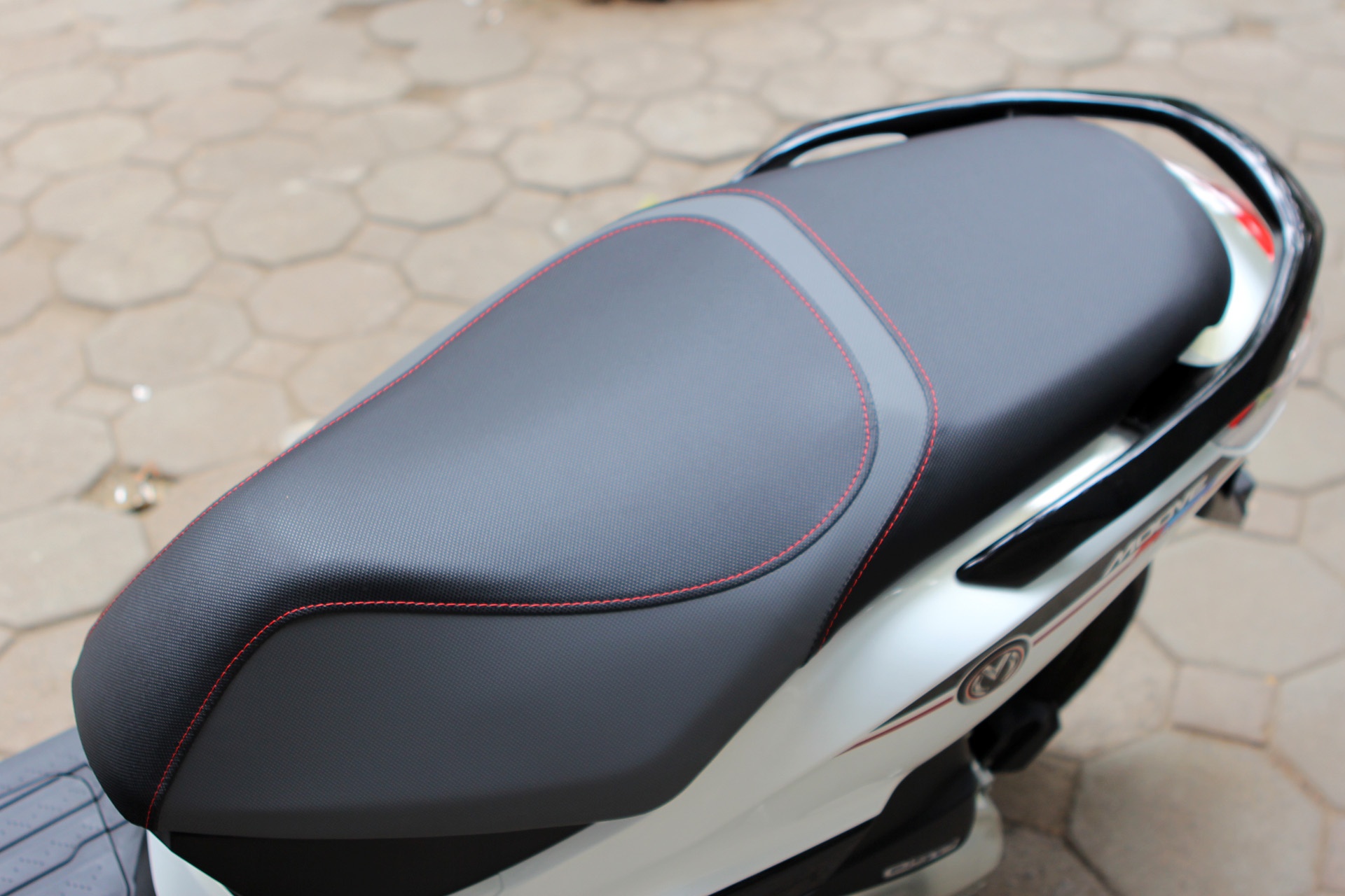 | Yên xe được phối màu thể thao, tạo điểm nhấn với đường chỉ may màu đỏ. |