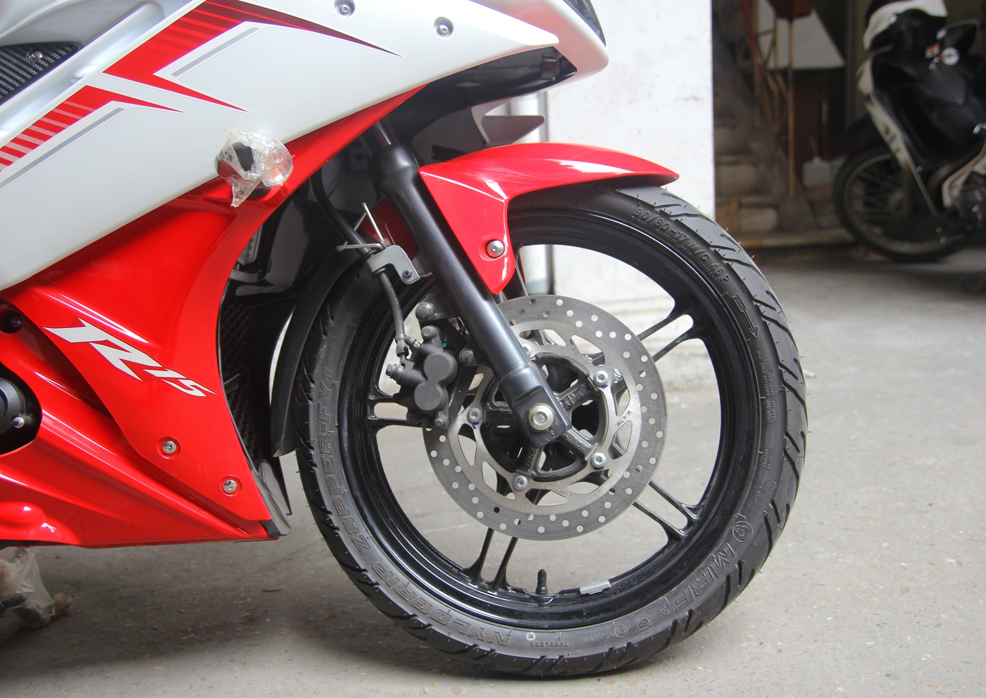 | R15 2013 được trang bị lốp kích thước 90/80-17 phía trước, cùng bộ vành 5 chấu kép thể thao. |