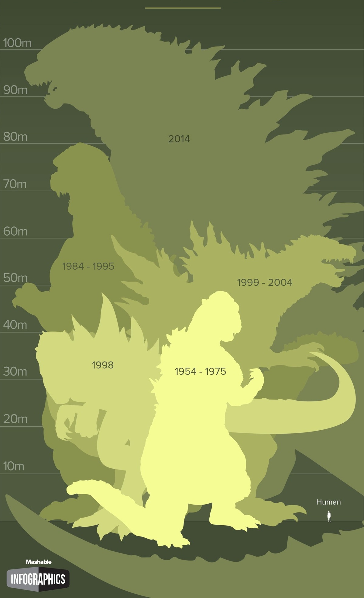 108,2 mét: Chiều cao của Godzilla trong bộ phim mới. Đây cũng chính là phiên bản Godzilla cao lớn nhất trong lịch sử. Chiều cao của Godzilla trong bộ phim đầu tiên năm 1954 do Toho sản xuất chỉ là 50 mét.