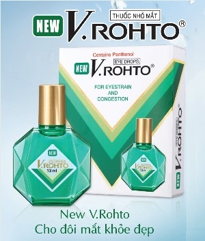 Thuốc nhỏ mắt New V.Rohto hỗ trợ chống mỏi mắt, xung huyết kết mạc, bệnh mắt do tia cực tím hay các tia sáng khác, nhìn mờ do tiết dịch, mắt ngứa, viêm mi, phòng bệnh về mắt khi bơi lội hoặc do bụi… Thuốc không dùng cho người bị tăng nhãn áp. Liên hệ công ty TNHH Rohto-Mentholatum Việt Nam (16 VSIP, đường số 5, khu công nghiệp Việt Nam - Singapore, Thuận An, Bình Dương). Điện thoại 08 3822 9322 hoặc website: http://rohto.com.vn/