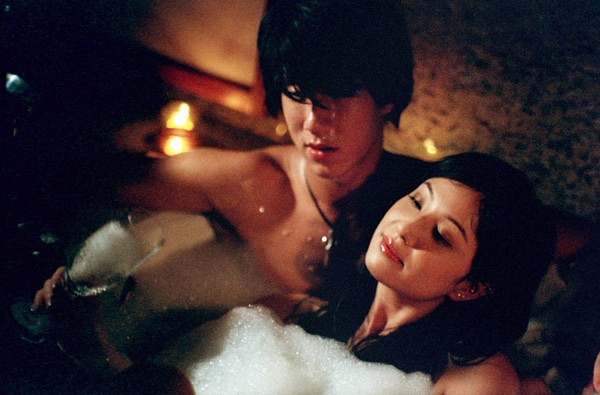 | Là bạn thân thời đại học nên Triệu Vy và Trần Khôn đã có một cảnh tắm rất tình tứ trong bộ phim Hoa Mộc Lan. |