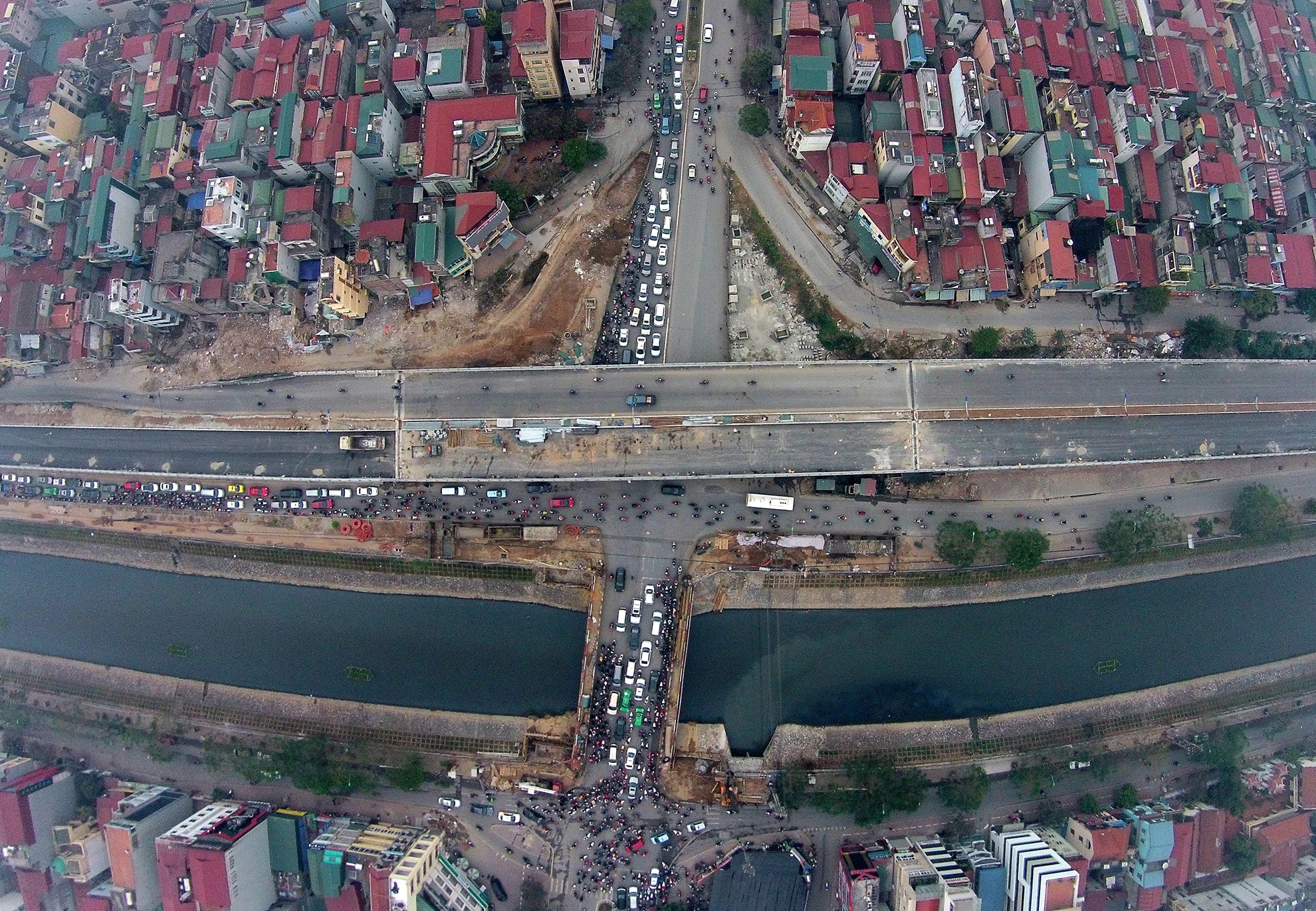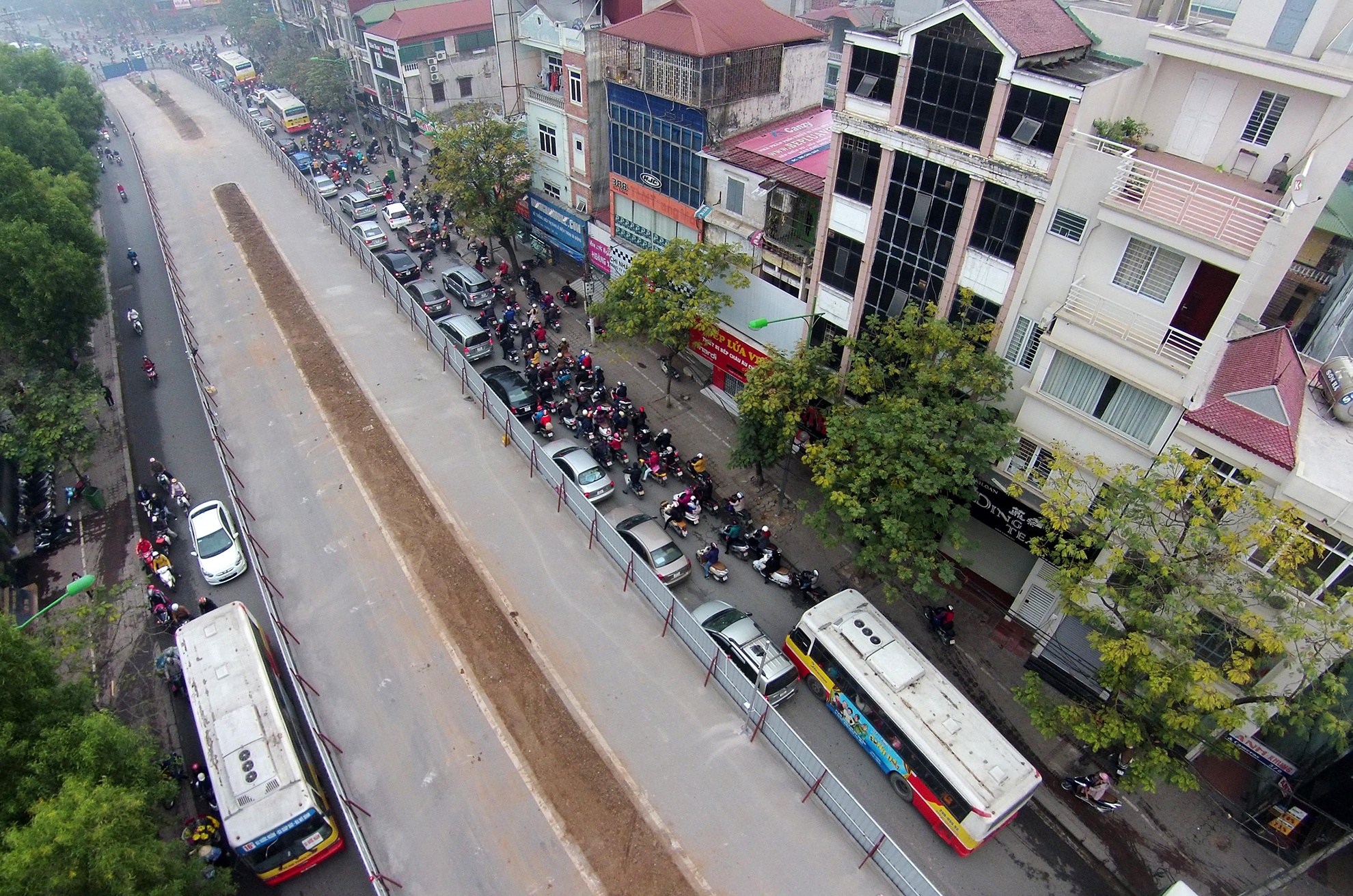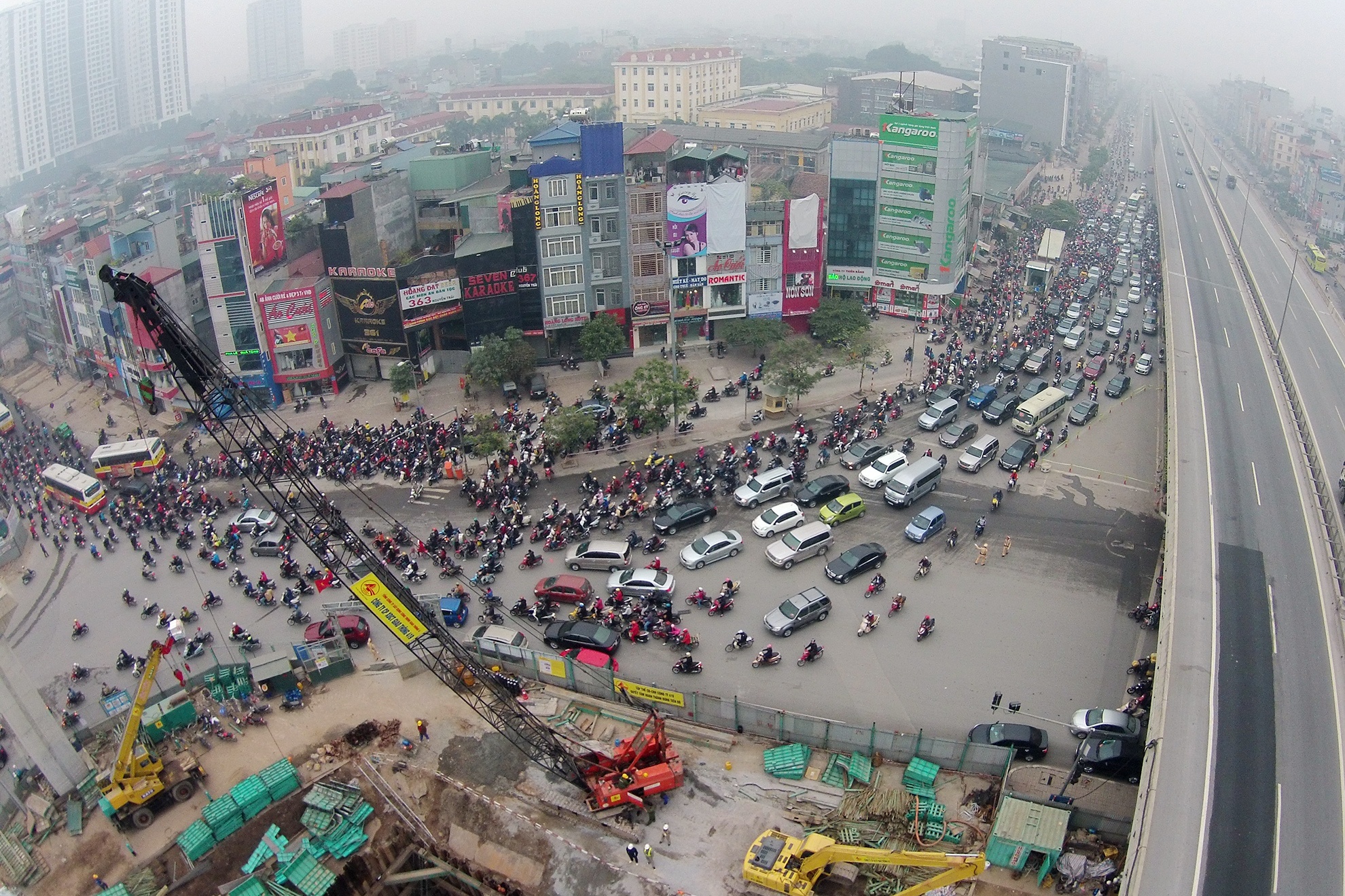 Dịp cuối năm, người Hà Nội đánh vật mỗi giờ cao điểm bởi những con đường dẫn vào trung tâm vốn đông đúc nay lại bị thu hẹp bởi rào chắn, lô cốt công trường. Ngã tư Khuất Duy Tiến - Nguyễn Trãi - Nguyễn Xiển là nốt giao của các tuyến huyết mạch từ Hà Đông, Linh Đàm, Tố Hữu... vào trung tâm thủ đô. Vào giờ cao điểm, số người tham gia giao thông qua đây rất lớn, thường xuyên xảy ra ùn tắc. Tình trạng càng thêm trầm trọng khi rất nhiều lô cốt thuộc công trình đường sắt trên cao được dựng lên vào dịp cuối năm.