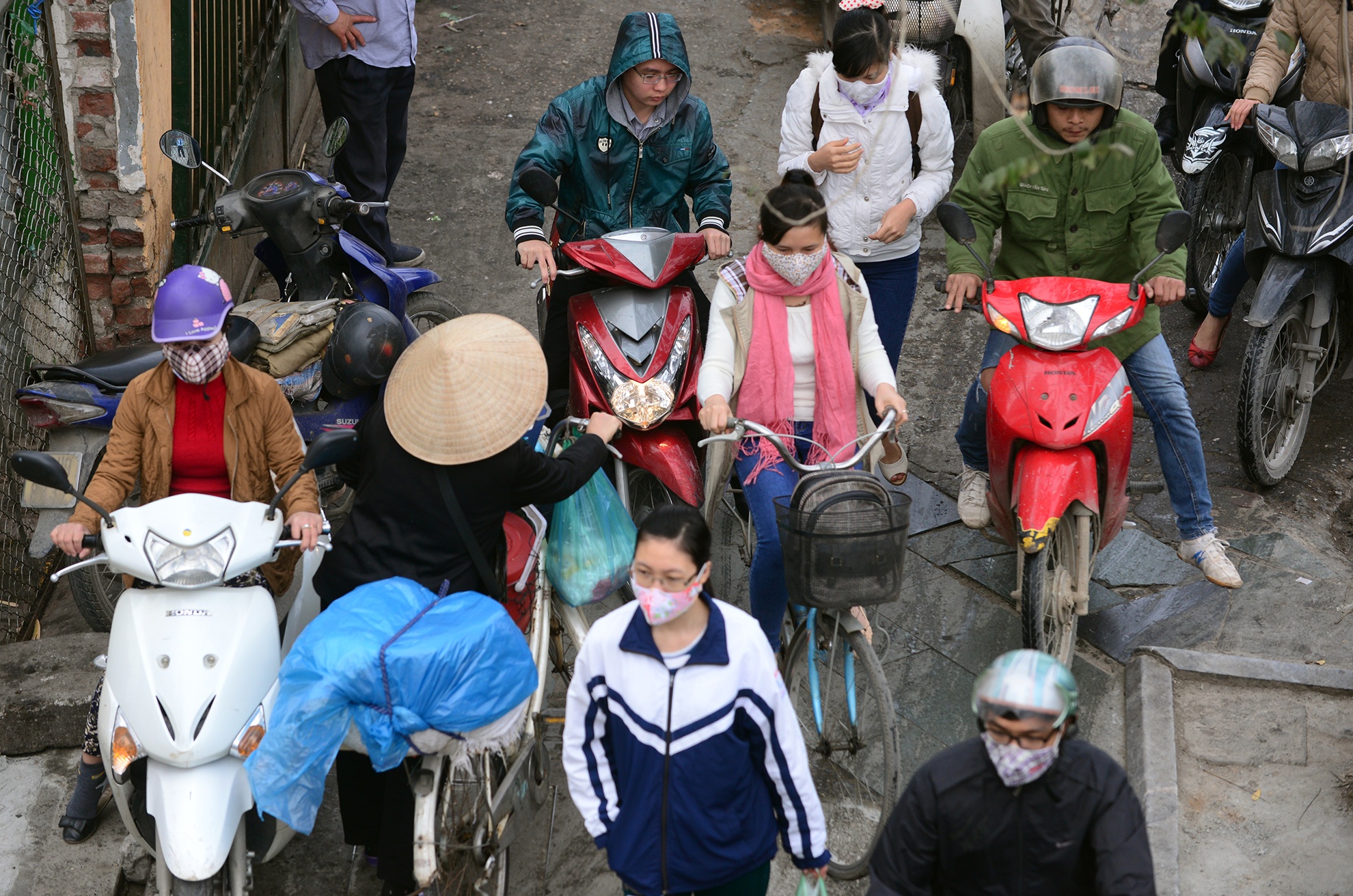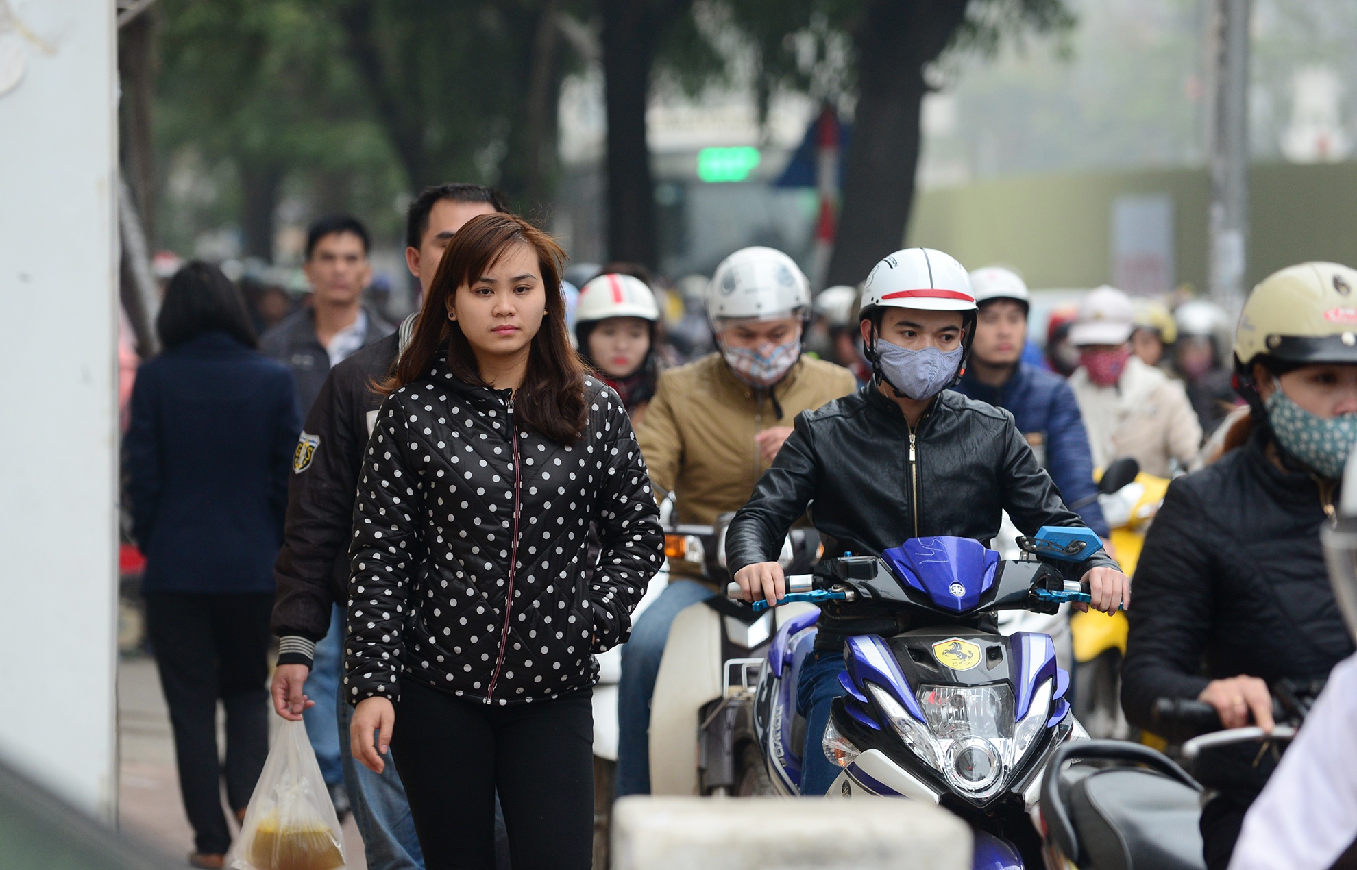 Nhiều người dắt xe đi ngược chiều nhưng không đi được do dòng người quá đông.