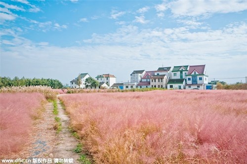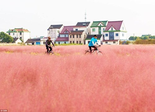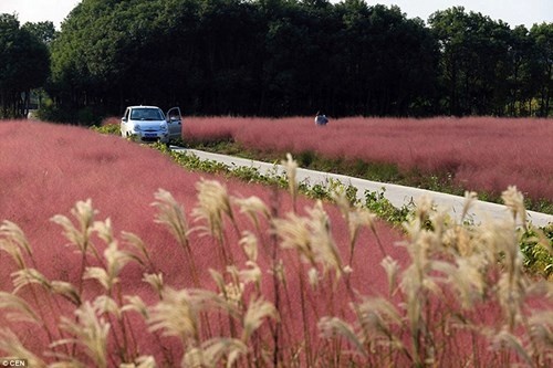 Đây là khung cảnh cánh đồng cỏ màu hồng nằm sát quốc lộ Zhulu ở Thượng Hải (Trung Quốc).