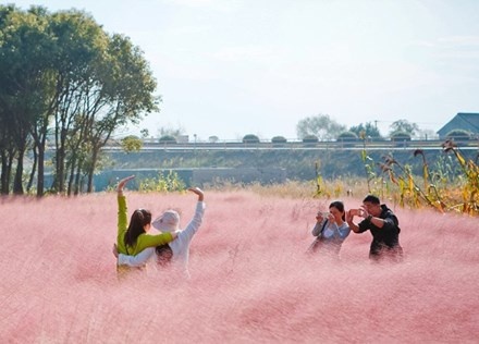 Nhiều bạn trẻ đã đổ xô về các cánh đồng cỏ hồng này để chụp ảnh.