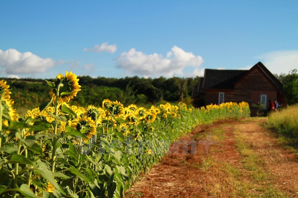 | ... chạy thẳng vào khoảng 2 km là tới cánh đồng hoa hướng dương. |