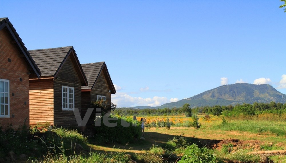 | Cánh đồng nằm giữa một khung cảnh hữu tình, bao quanh hồ nhỏ trong xanh, dẫn lối đến một khu nhà gỗ lãng mạn |
