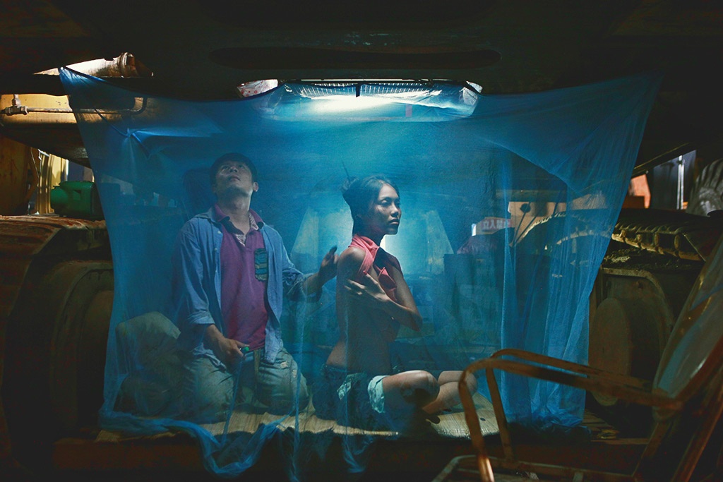 Ngoài cảnh đứng đợi người đẹp tắm, Bằng Kiều và mỹ nhân 9X cũng có cảnh giường chiếu trên phim. Lan Khuê từng chia sẻ, cô không gặp khó khăn khi đóng cảnh nóng cùng đàn anh sinh năm 1973. Thậm chí, cô được ông bố 3 con chủ động trong mọi cảnh quay gần gũi.