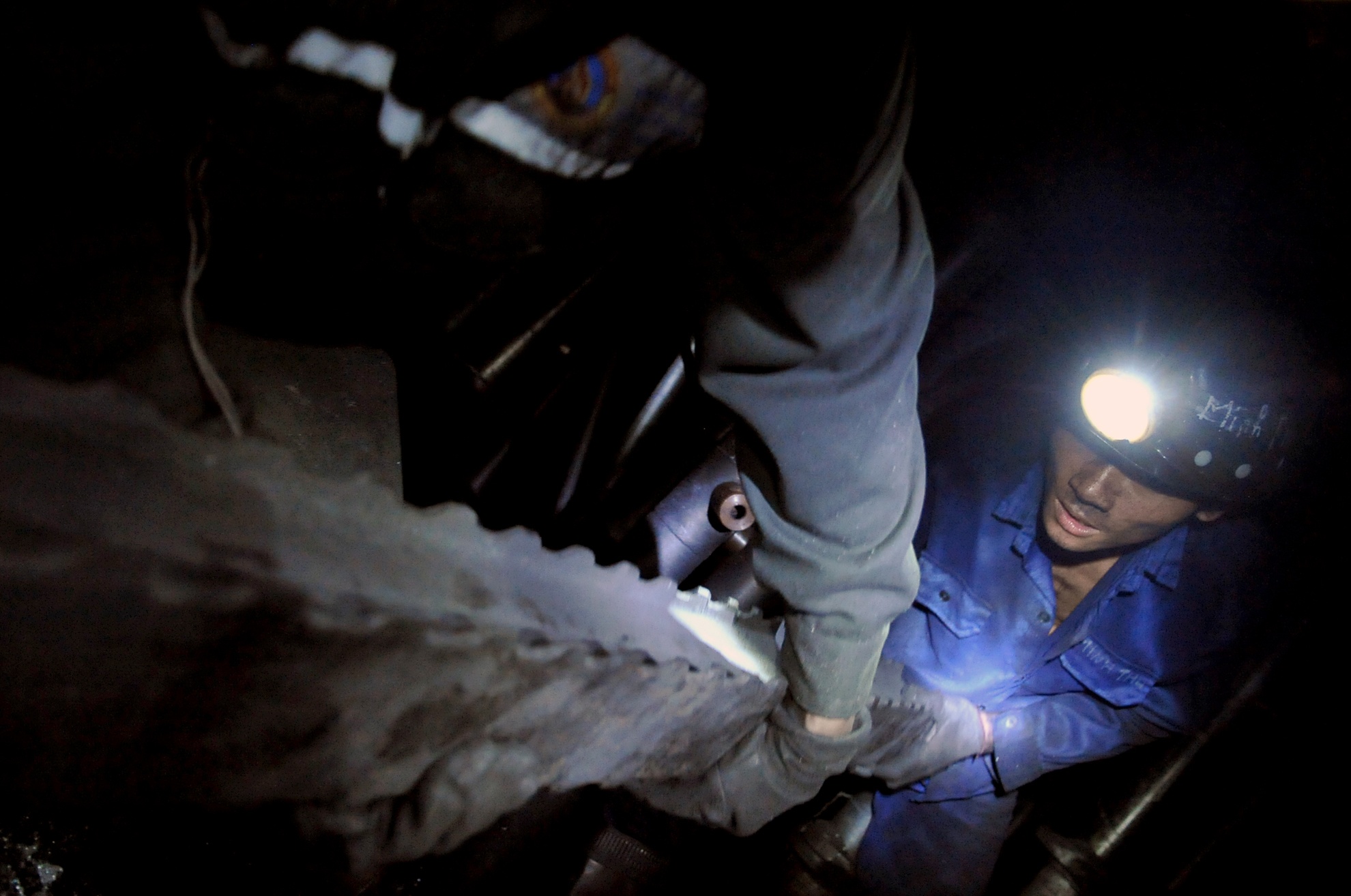 Cảnh làm việc dưới lòng đất của công nhân mỏ