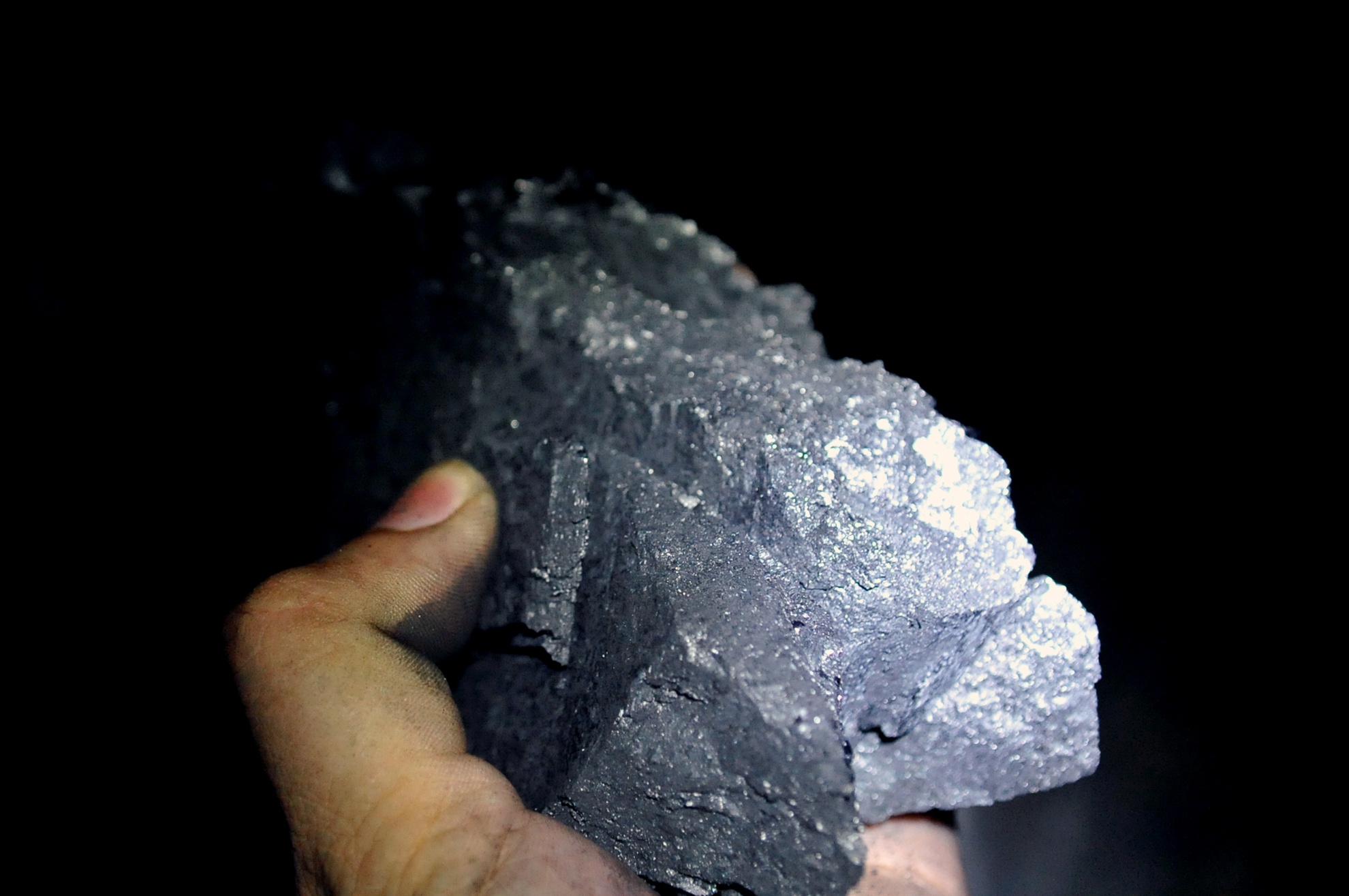 Một cục than đang được công nhân cầm trên tay kiểm tra.