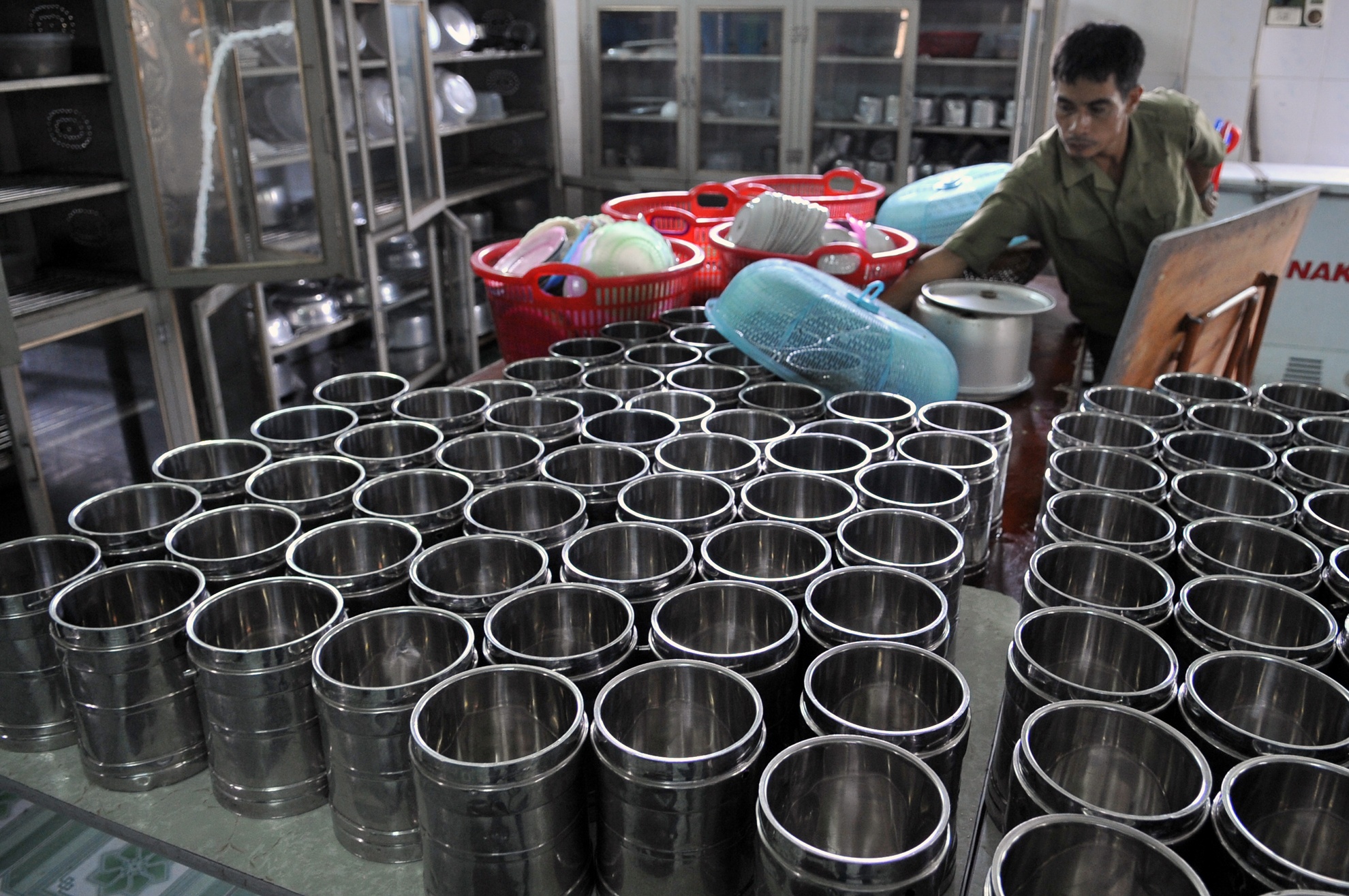 Các cạp lồng đựng suất ăn cho người thợ mỏ to hơn bình thường đảm bảo ăn no, có sức khỏe làm việc.