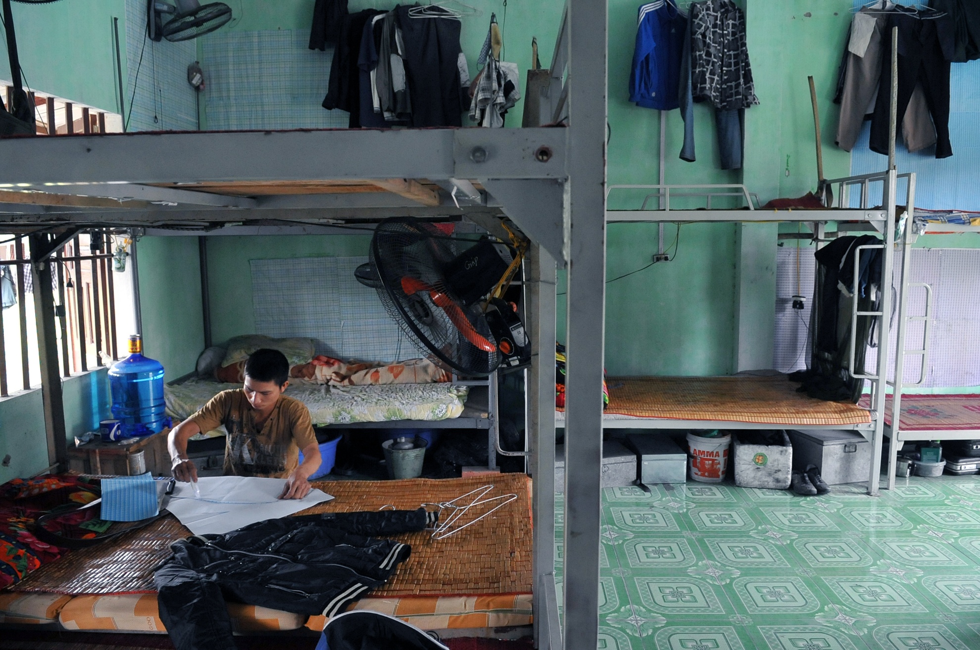 Ngoài giờ làm, các anh được nghỉ ngơi, tự do làm những điều mình thích tại khu nhà tập thể.