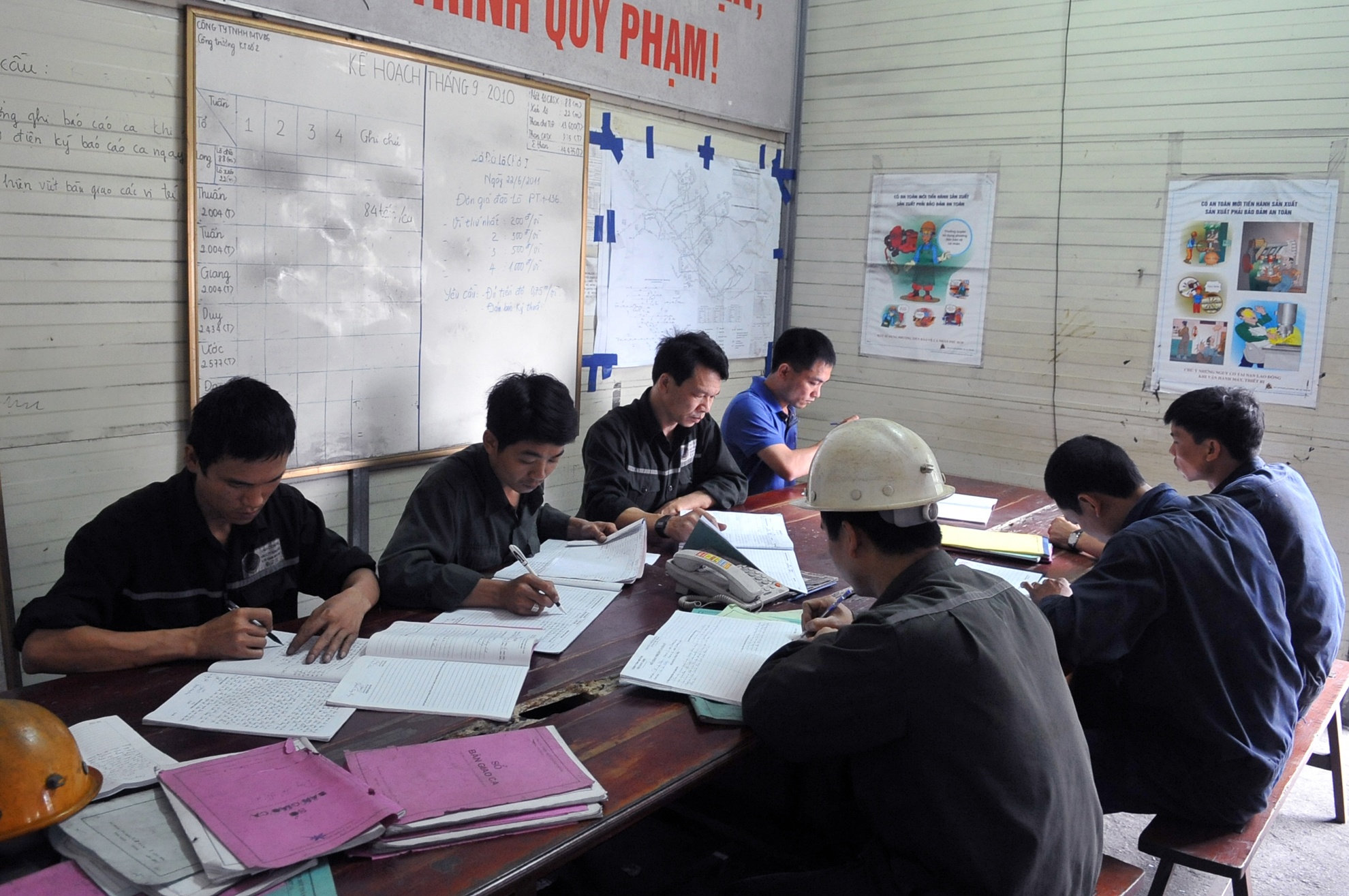 Các cán bộ luôn luôn sát sao kiểm tra dây chuyền, đường ray vận chuyển than từ trong hầm ra ngoài.