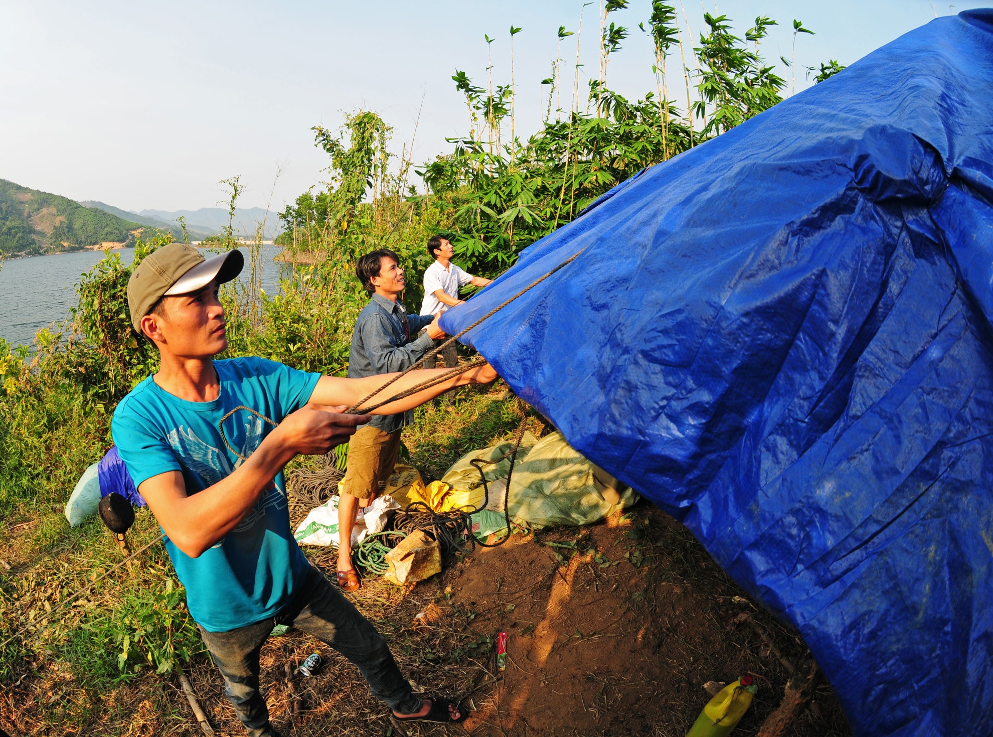 Sau nhiều ngày đêm thuyết phục, anh Hạ Văn Tĩnh và em trai Hạ Văn Minh đồng tình cùng anh Trưởng rời nhà lên núi. Ban đầu, họ đóng ba chiếc ghe nhôm, mua 10 tấm lưới và một tấm bạt lớn vượt đường xa hơn 60 km lên huyện vùng cao Sơn Tây.