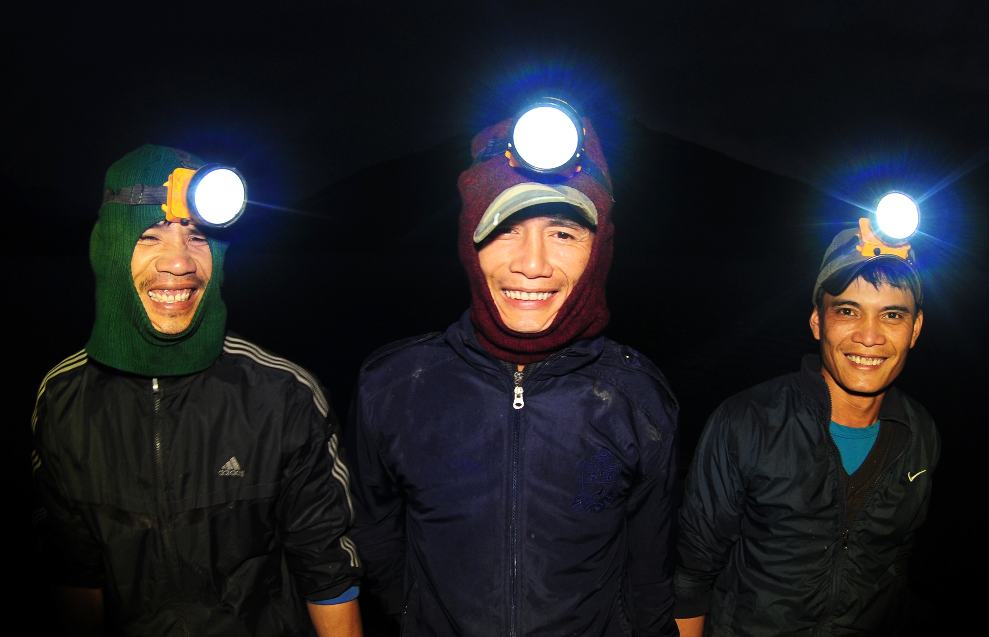 Bắt cá lúc 2h sáng giữa vùng lòng hồ thủy điện 2h sáng. Bất chấp tiết trời lạnh buốt, ba anh em Hà Văn Trưởng thức dậy đeo đèn pin rời mái lều giữa rừng chèo ghe rời bến đi kéo lưới bắt cá giữa vùng lòng hồ thủy điện để kịp bán lúc sáng sớm.