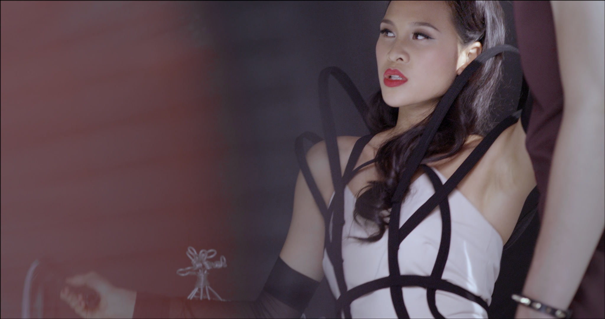| Trong cảnh quay này, với tạo hình mạnh mẽ, sexy cùng chiếc roi da, Phương Mai khiến nam diễn viên Petey “Majik” Nguyễn phấn khích và thốt ra âm thanh lạ. |