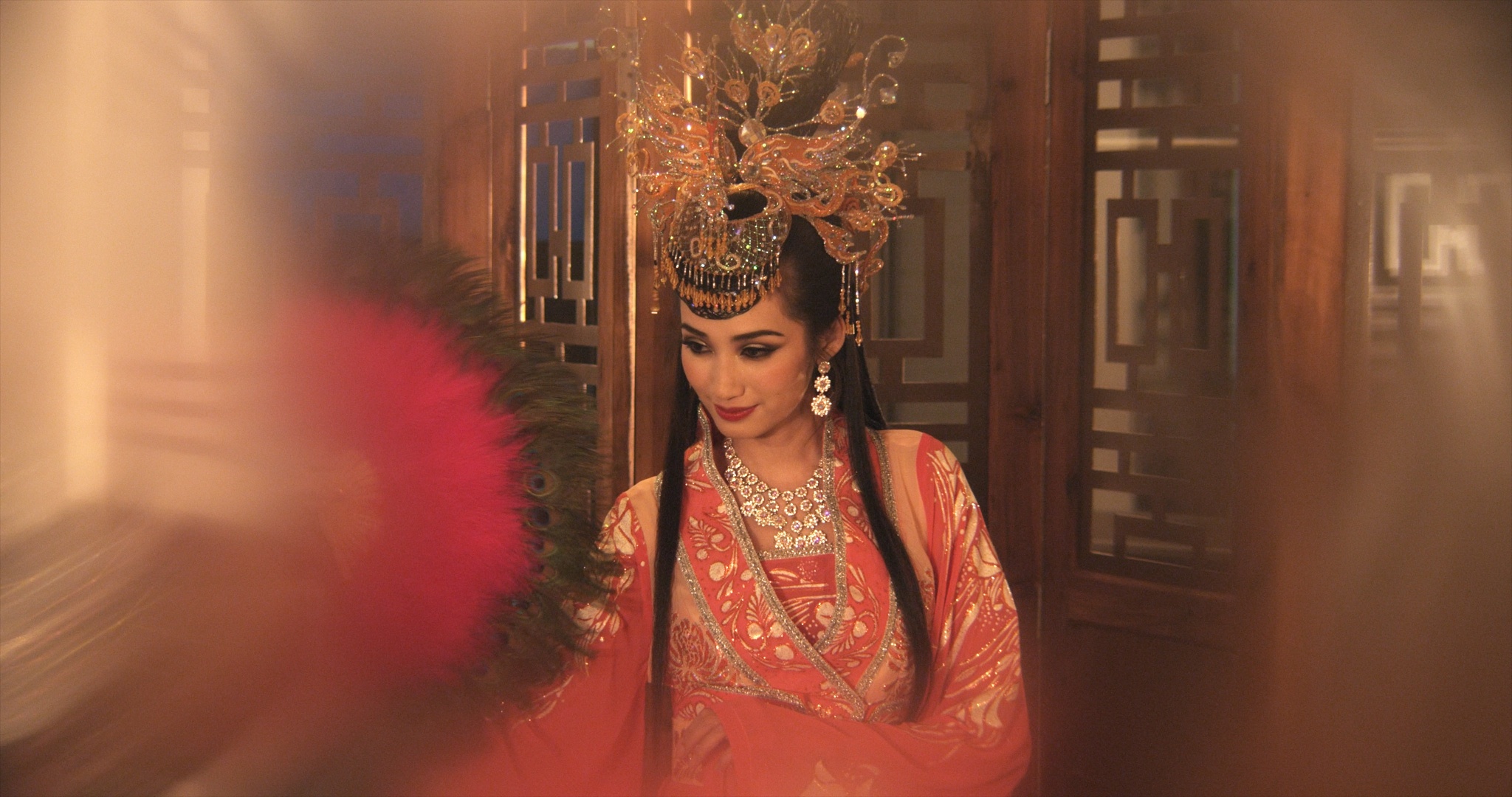 | Trúc Diễm với phiên bản Lữ Bố - Điêu Thuyền cải biên trong phim Âm mưu giày gót nhọn. |