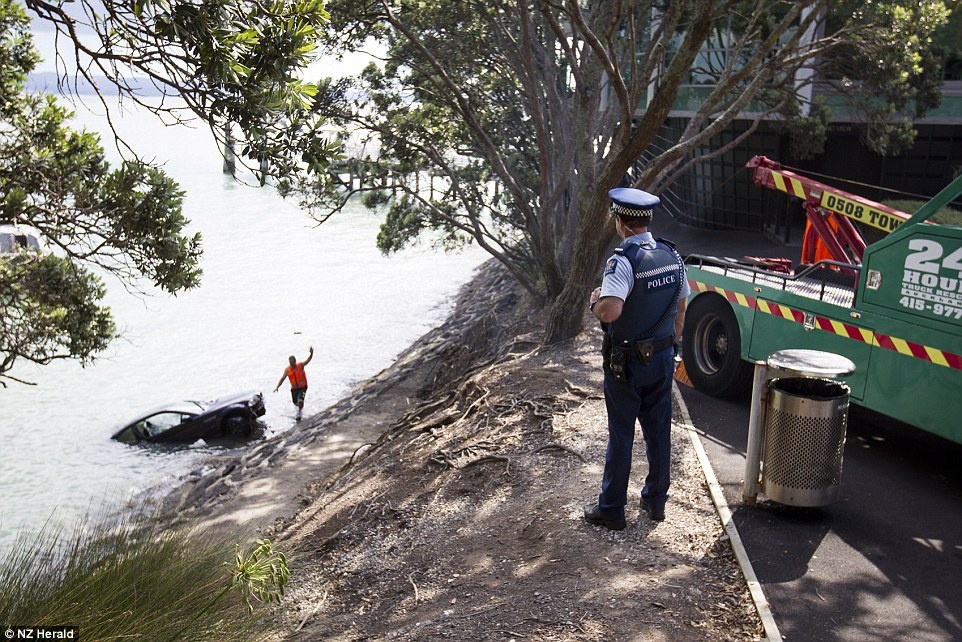 | Nhà chức trách đang điều tra nguyên nhân khiến xe lao xuống nước. Ảnh: New Zealand Herald |