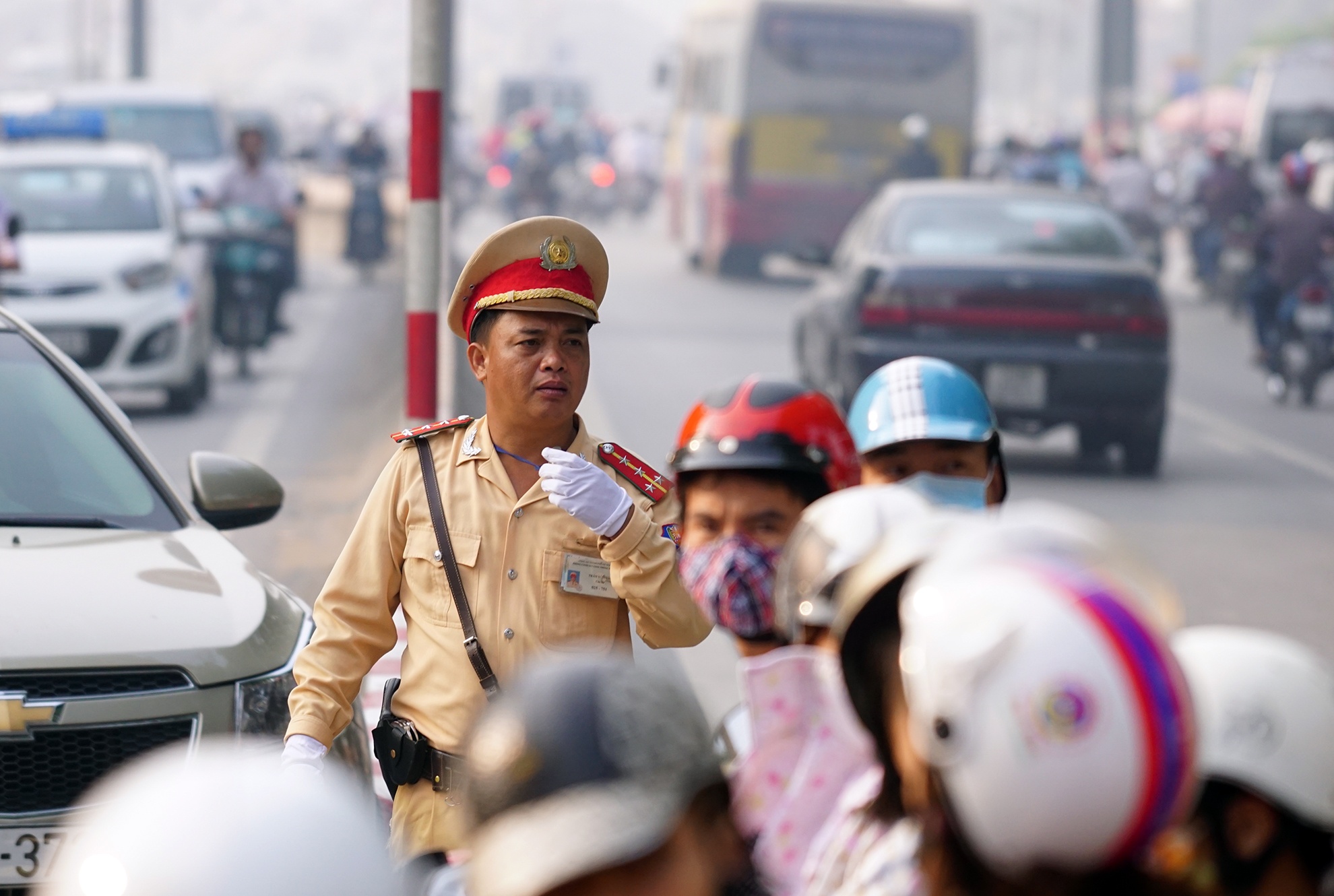 Nhiều tuyến đường cửa ngõ nội đô vẫn ùn tắc nhưng mức độ nhẹ hơn trong buổi sáng đầu tuần cảnh sát, dân phòng, thanh tra giao thông Hà Nội ra quân tổng lực phân luồng.