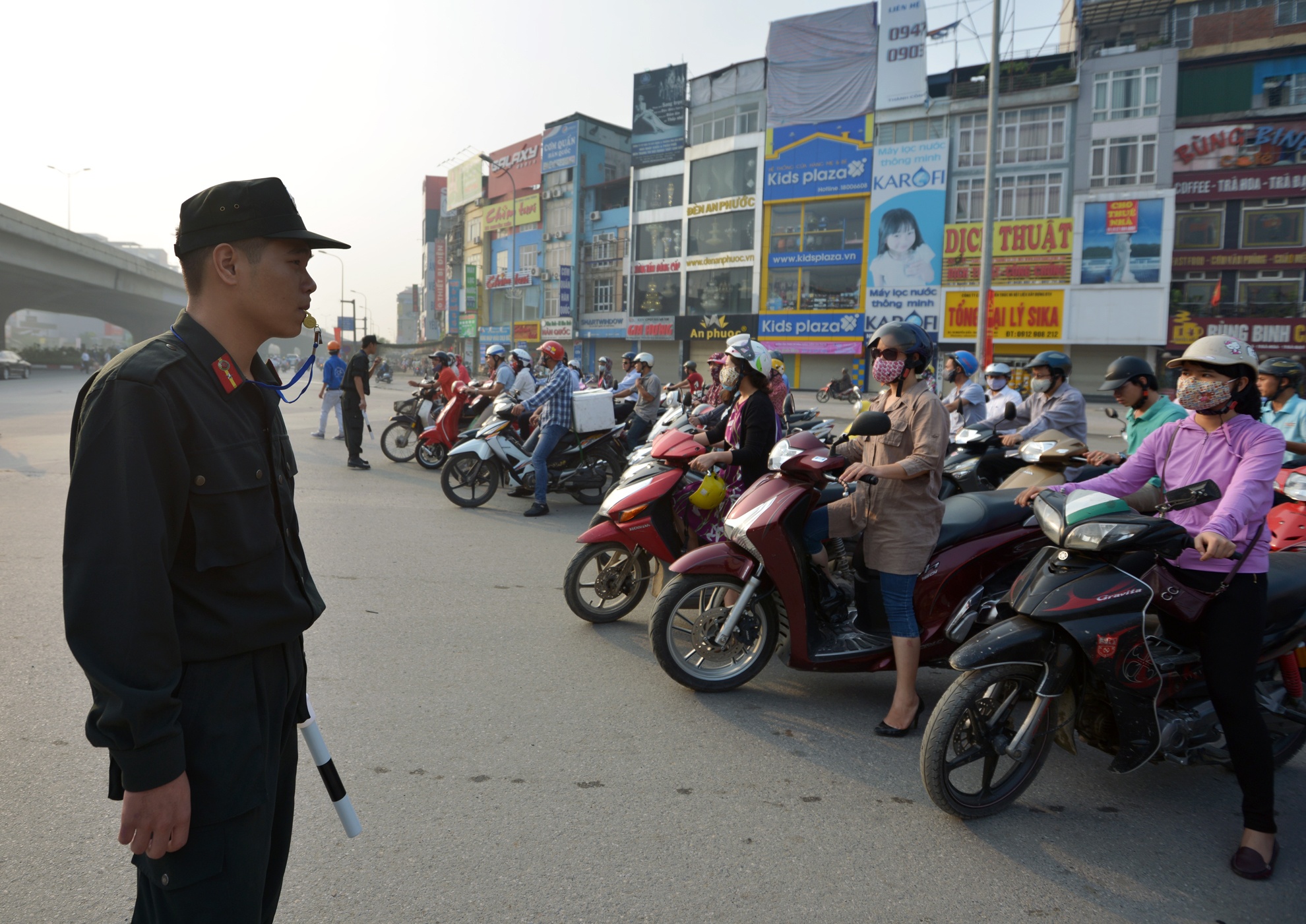 Đội phó CSGT số 7, trung tá Hà Văn Thanh cho biết, sáng nay 10 CSGT cùng 8 CSCĐ, 10 thanh niên tình nguyện của ĐH Công nghiệp Hà Nội ra quân phân làn. "Về cơ bản, giao thông thông suốt, hạn chế được tình trạng chen lấn, cố vượt đèn đỏ hoặc đi ngược chiều của nhiều người", trung tá Thanh nói.