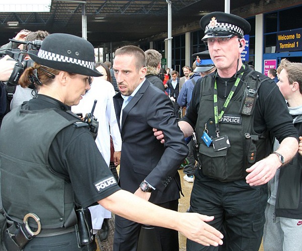 | Lực lượng an ninh phải làm việc vất vả để các cầu thủ Bayern có thể an toàn lên xe về khách sạn. |