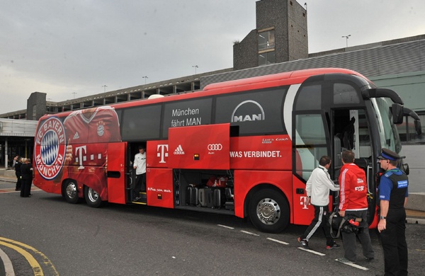 | Chiếc xe Bayern dùng để di chuyển tại Manchester. |