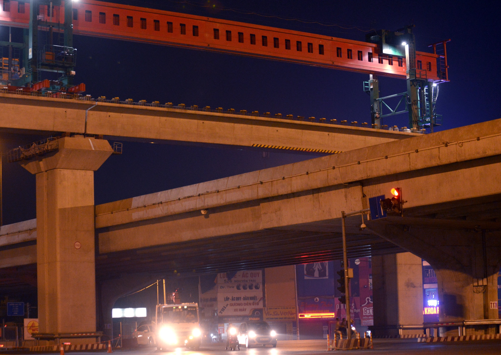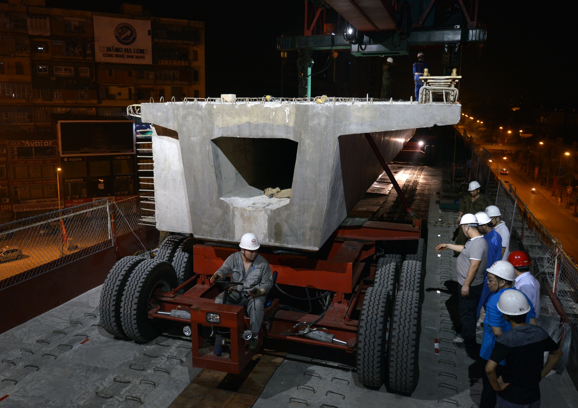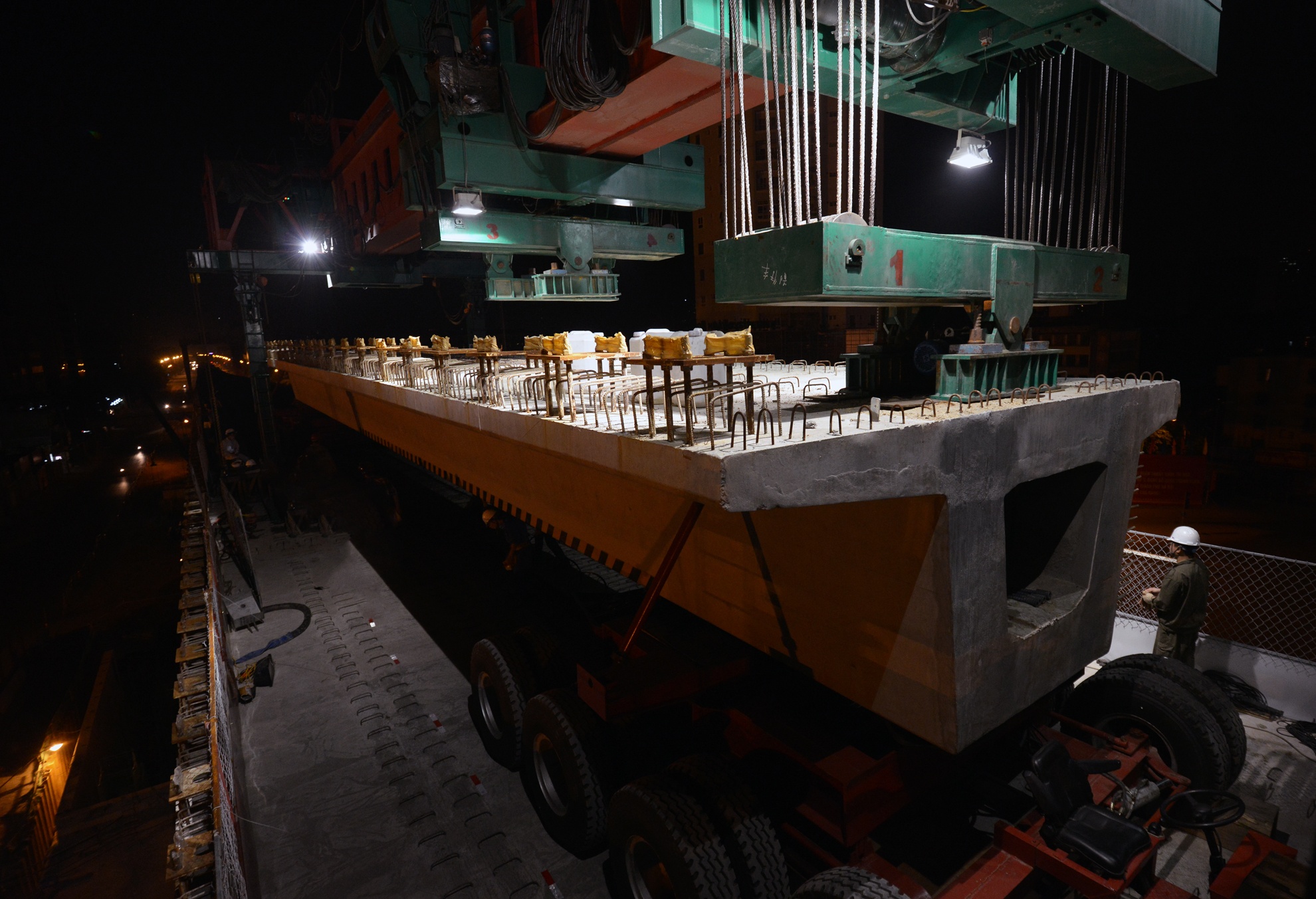 | 3h30 sáng khi phiến dầm thứ nhất vào vị trí chuẩn xác cũng là lúc việc lao tiếp phiến dầm thứ 2. |