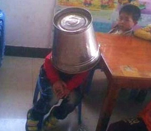 | Xô nước úp trên đầu học sinh. Ảnh: Rex Feat. |