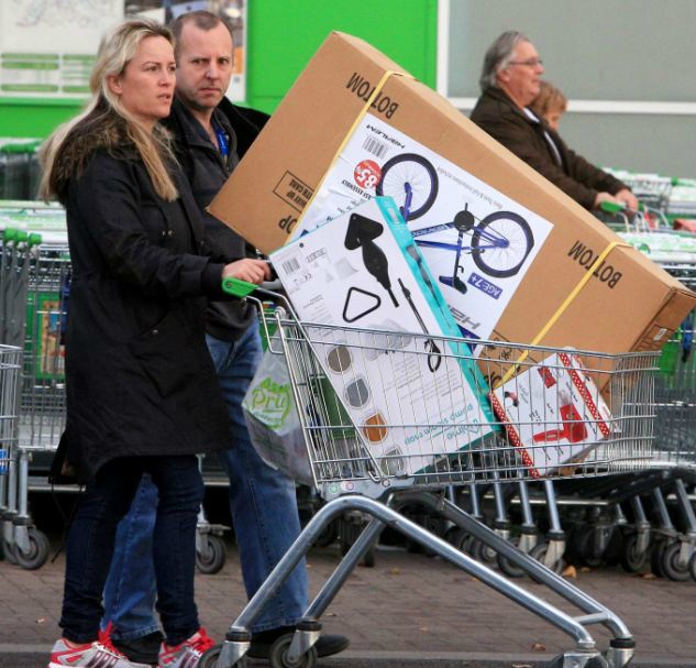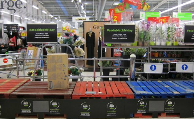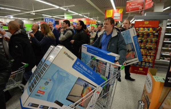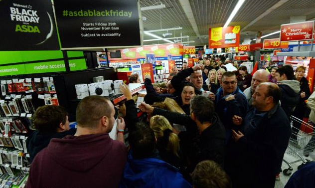 | Hàng trăm người chen lấn nhau trong trung tâm mua sắm Asda ở Benton, North Tyneside để mua những hàng điện tử giảm giá trong ngày "thứ sáu đen". Ảnh: North News & Pictures. |