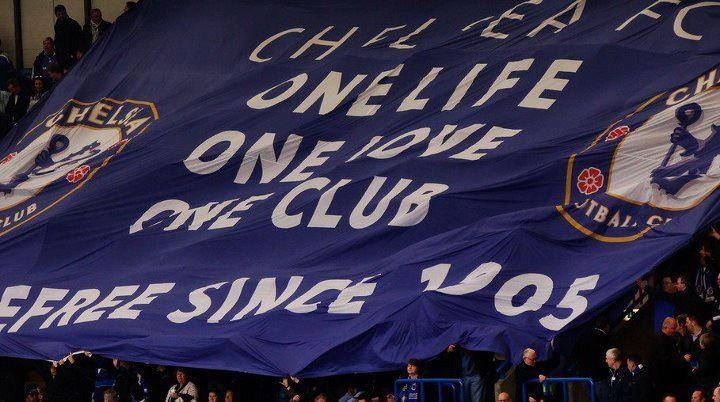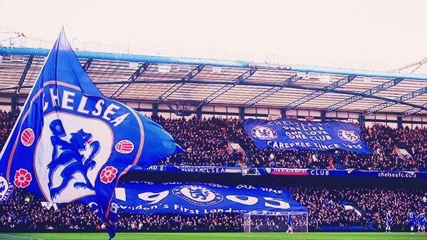 Những lá cờ màu xanh - trắng luôn tung bay trên khán đài Stamford Bridge.