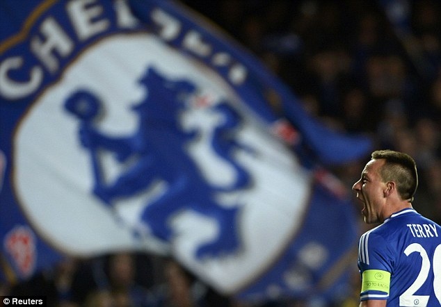 Người đội trưởng của Chelsea, John Terry, hướng về phía khán đài để ăn mừng cùng các cổ động viên thân yêu.