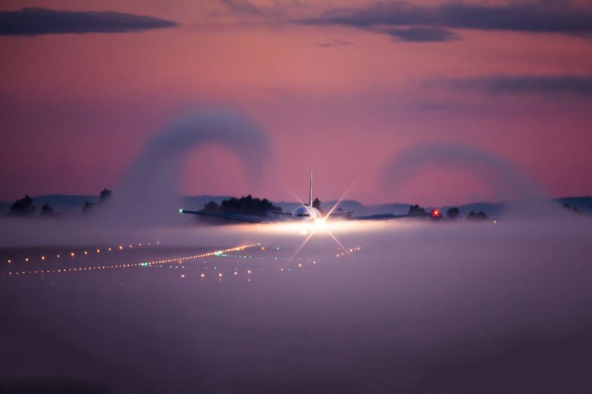 Máy bay Boeing di chuyển trên đường băng khi sương mù bao phủ. Sức mạnh của các động cơ phản lực khiến màn sương bay khỏi mặt đất. Ảnh: Tân Hoa Xã. |