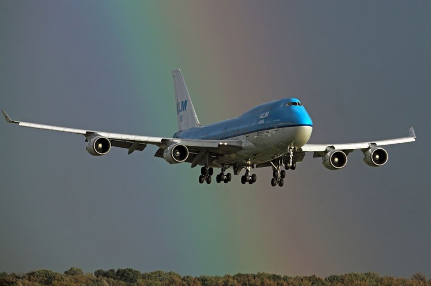 Máy bay Boeing 747 chuẩn bị hạ cánh. Cầu vồng xuất hiện phía sau khiến nhiều người liên tưởng chiếc máy bay vừa ra khỏi thế giới thần tiên. Ảnh: Tân Hoa Xã. |