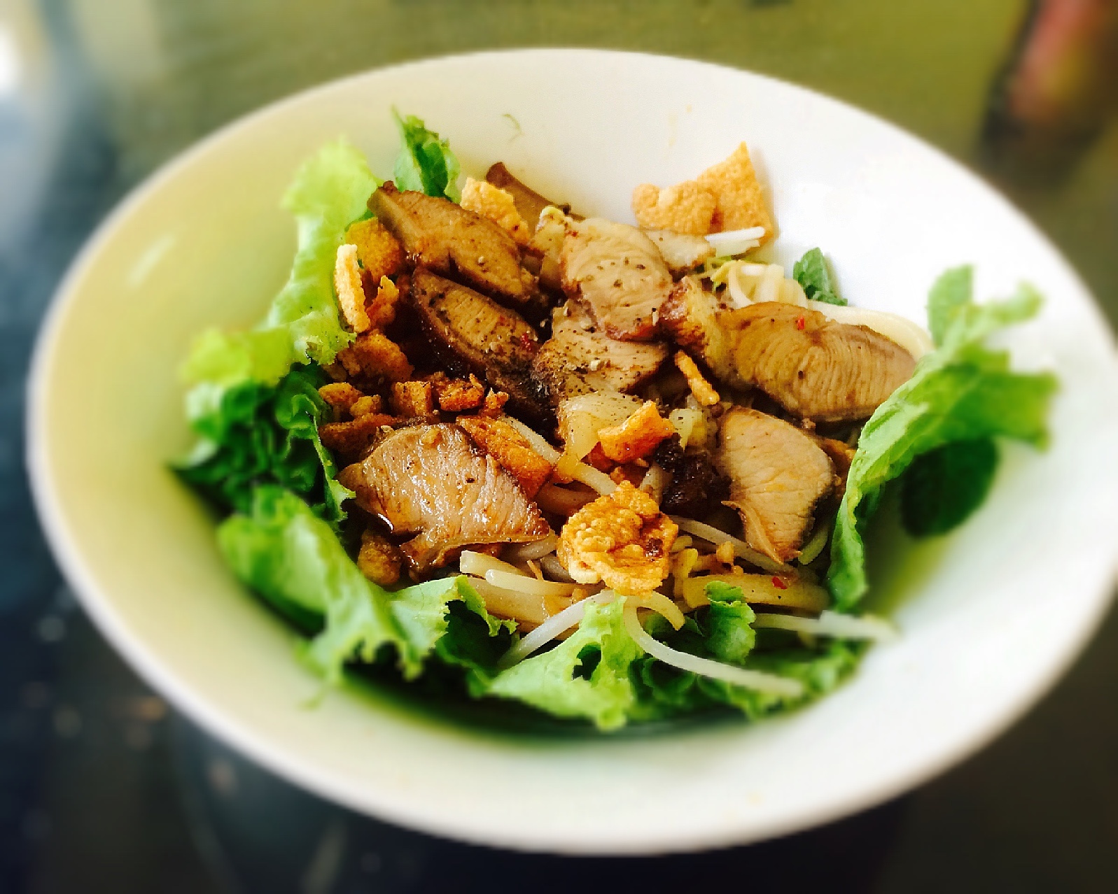 | Điểm cộng là thịt xá xíu mềm ngon, món gia giảm vừa miệng, có vị thơm đặc trưng, hơn hẳn những món trộn phổ biến tại Hà Nội. |