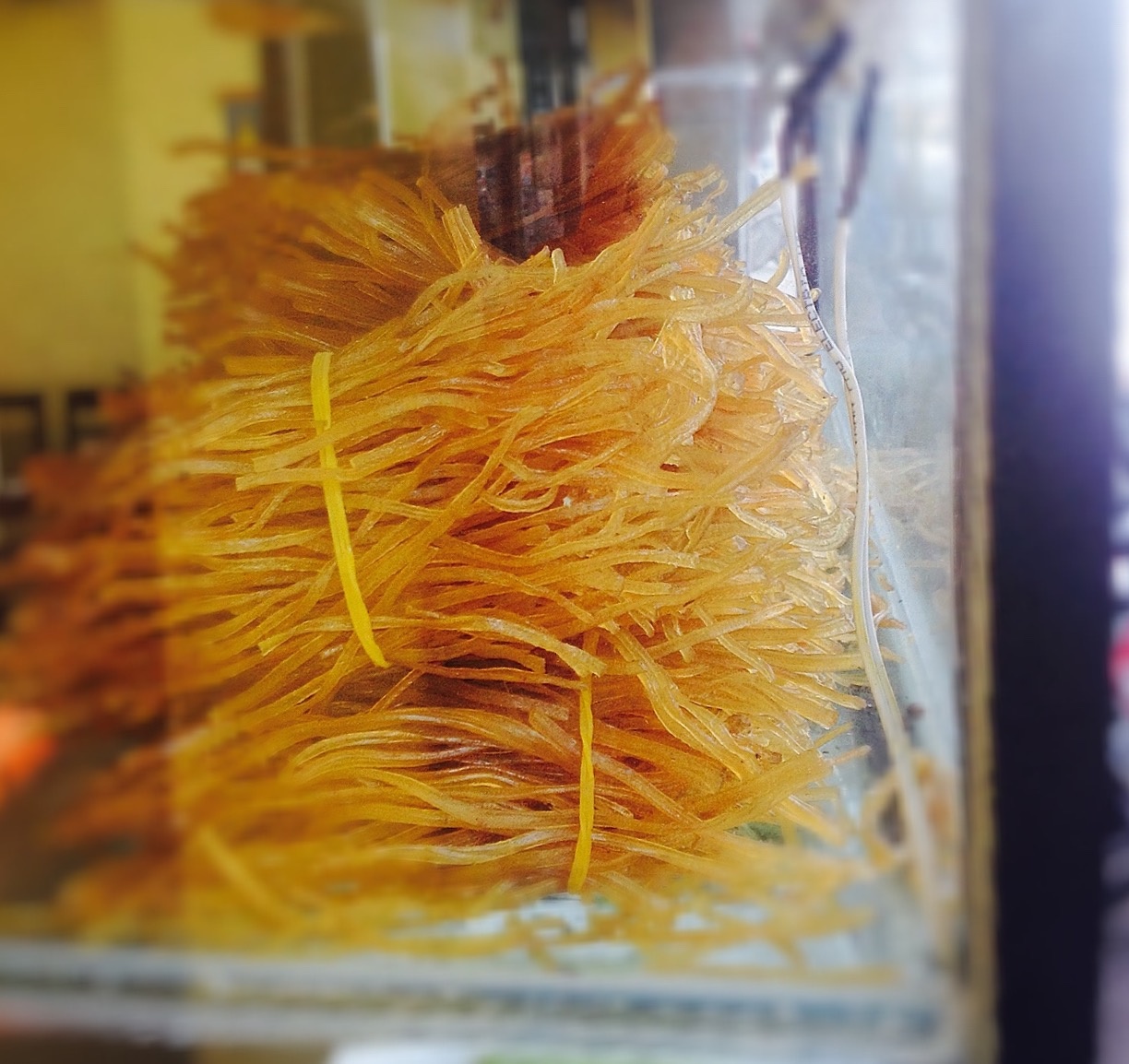 | Quán có chiếc tủ kính, khoe khéo những sợi cao lầu khô. |