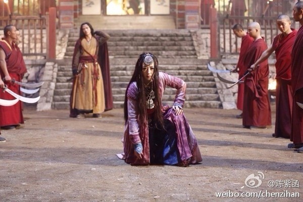 | Tiểu Long Nữ (lớn) đang tỷ thí với Kim Luân Pháp Vương. |