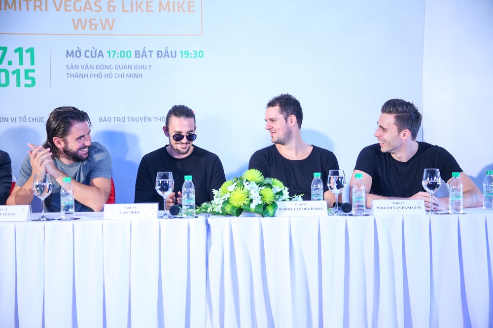 | Hai cặp DJ hàng đầu thế giới trong họp báo. |