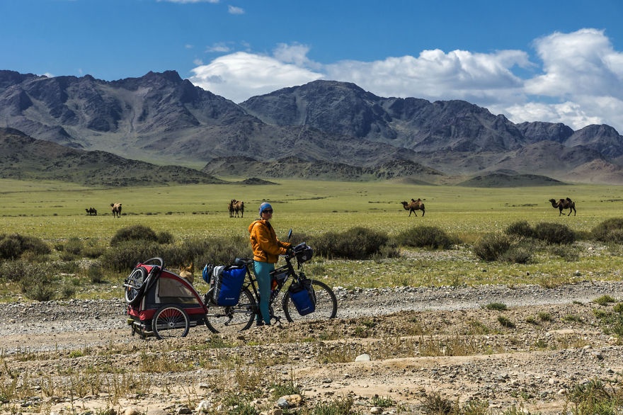 | Agata và Przemek đạp xe tới Mongolia cùng Diuna. |