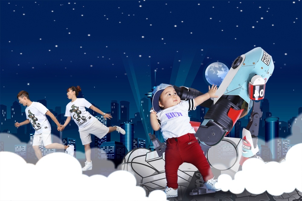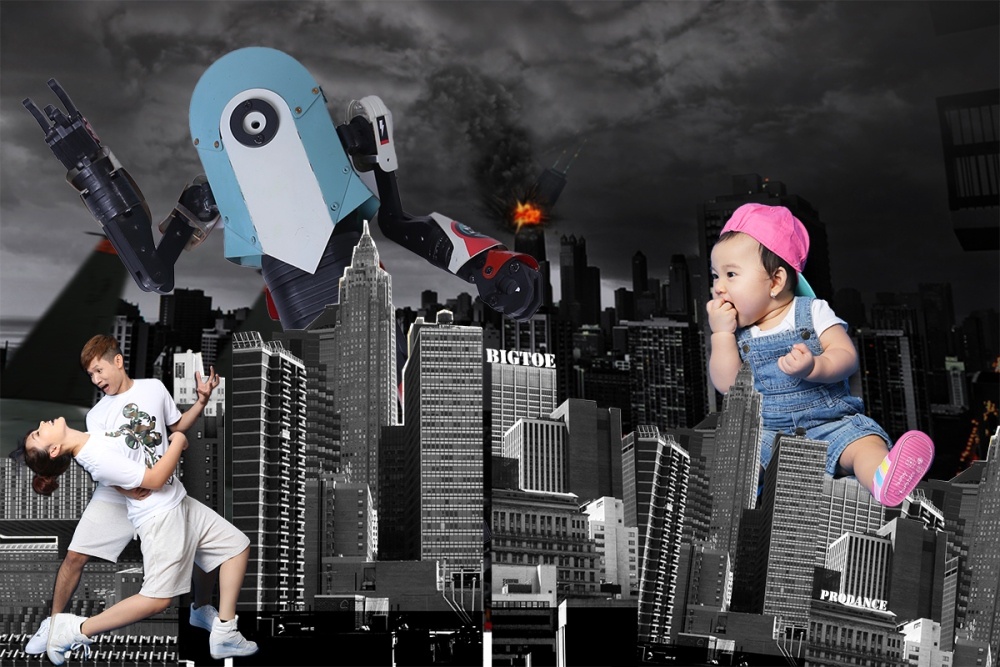 | Chú robot khổng lồ xuất hiện trong ảnh tượng trưng cho những người bạn xung quanh Kiuti. Còn trưởng nhóm Big Toe và vợ đóng vai trò là hai nhân vật phụ, vui đùa cùng cô bé hiếu động. |